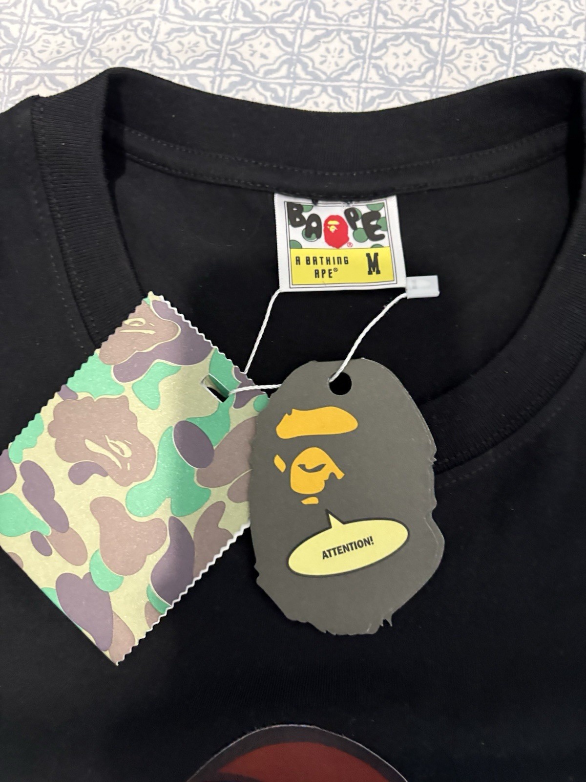 BAPE Camo Milo On Big Ape Tee (Black/Blue) Size M. Condition is New with tags. Shipped with USPS Ground Advantage.
