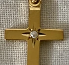 BAR 14k Yellow Gold Cultured White Freshwater Pearl Cross Small Pendant ~0.98g