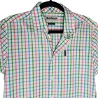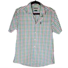 Excellent condition, gently worn Button down Short sleeve Chest Pocket Round hem Color white checkered blue, green, pink Pit to Pit 19" Front Length 28.5" back length 30" Size S