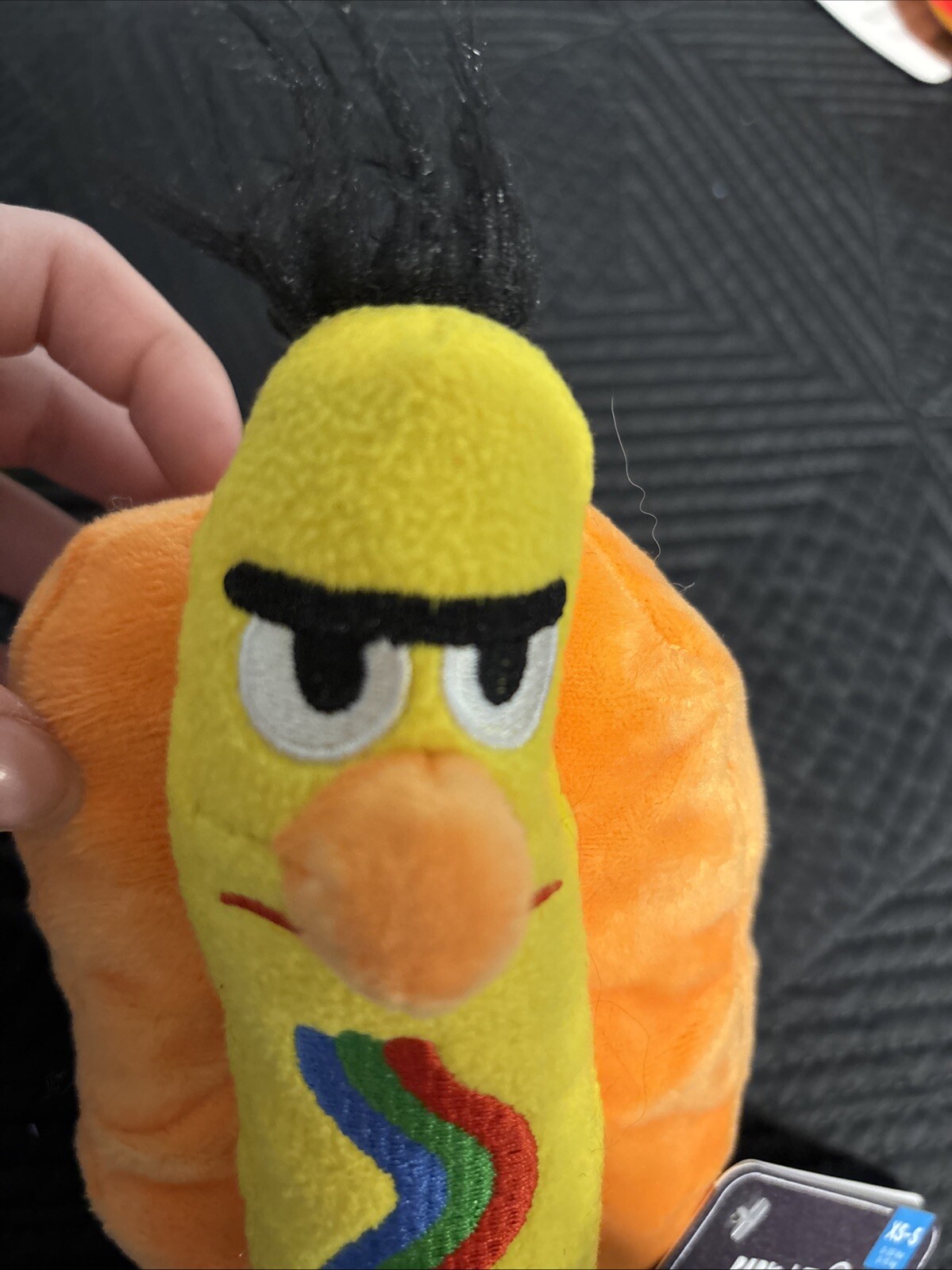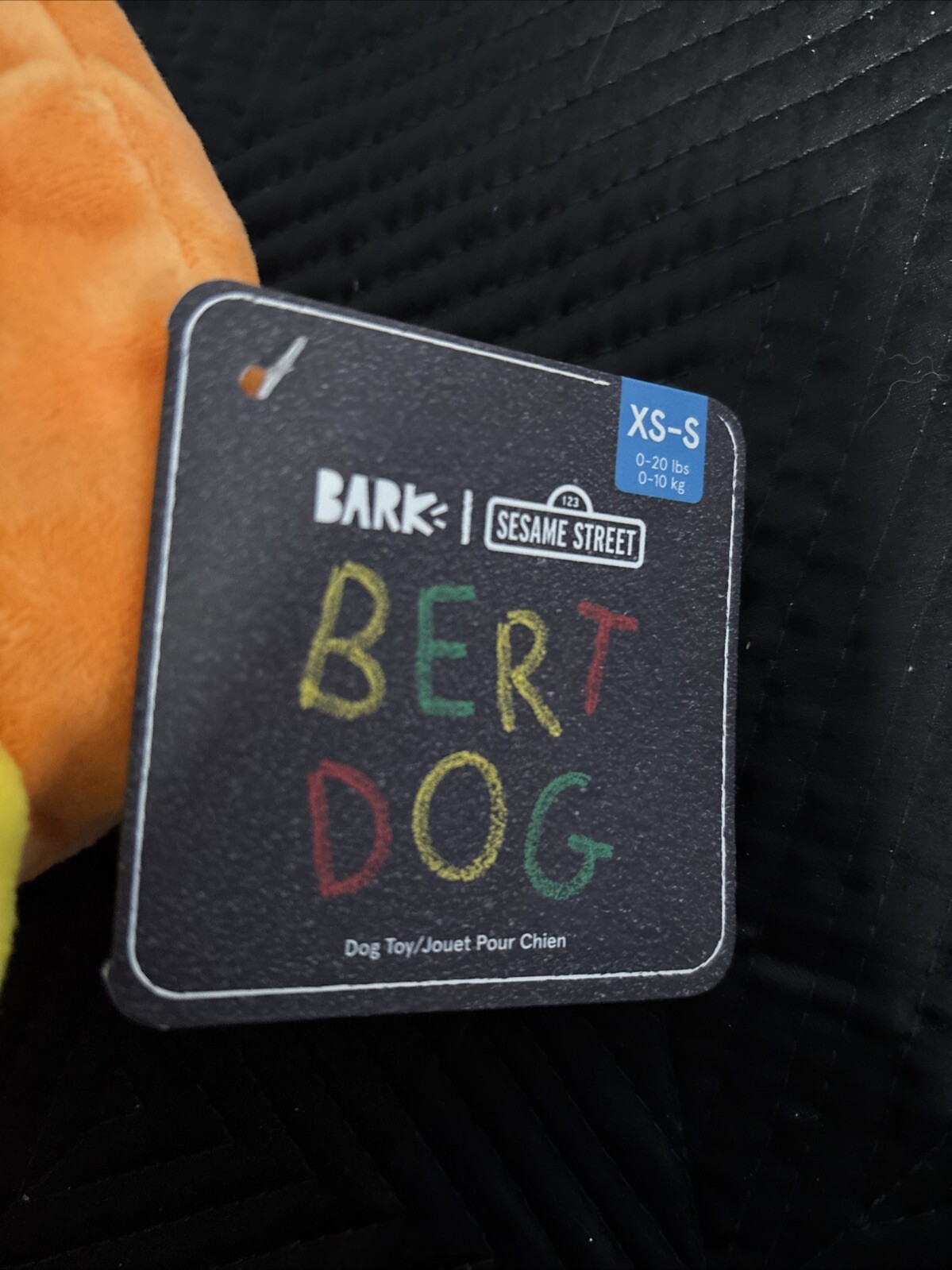 This is a BARK dog toy featuring Sesame Street's Bert character, designed for extra small dogs. The toy is suitable for dogs in the XS-S size range. With its playful and recognizable design, it offers entertainment and interactive play for small canine companions. The toy is part of the BARK brand's collection, known for producing high-quality and engaging toys for pets.