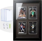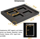 Wooden Trading Card Display Case – Protect and Showcase Your Collection Showcase Your Collection in Style: This wooden card display case is the perfect way to decorate your man cave or game room. Ditch the boxes and drawers—display your favorite cards in an elegant frame that adds charm and sophistication. Double Protection for Your Cards: Each case comes with 35PT magnetic card holders featuring UV protection, keeping your cards safe from fading, bending, scratching, or creasing. Additionally, the high-transparent plexiglass cover provides added protection from dust while ensuring clear visibility. Optimal Display Angle: The card slots are crafted from soft, elastic EVA material, which not only protects your precious cards but also holds them securely at the perfect angle for display. Cards remain stable and will not fall out during installation or swapping. Easy to Use – No Assembly Required: This display frame works just like a picture frame. It comes fully assembled—simply remove the back panel, place your cards, and it’s ready to showcase. Dimensions: Frame Outer Size: 14.5" W x 10.6" H x 1.2" D Compartment Cut-Out Size: 3" W x 4.3" H x 0.4" D Bonus Magnetic Card Holders: Includes 4 complimentary 35PT magnetic card holders to protect and display Baseball, Basketball, Hockey, Football, Pokémon, MTG, Yu-Gi-Oh! cards, and more. ( Cards not included. )