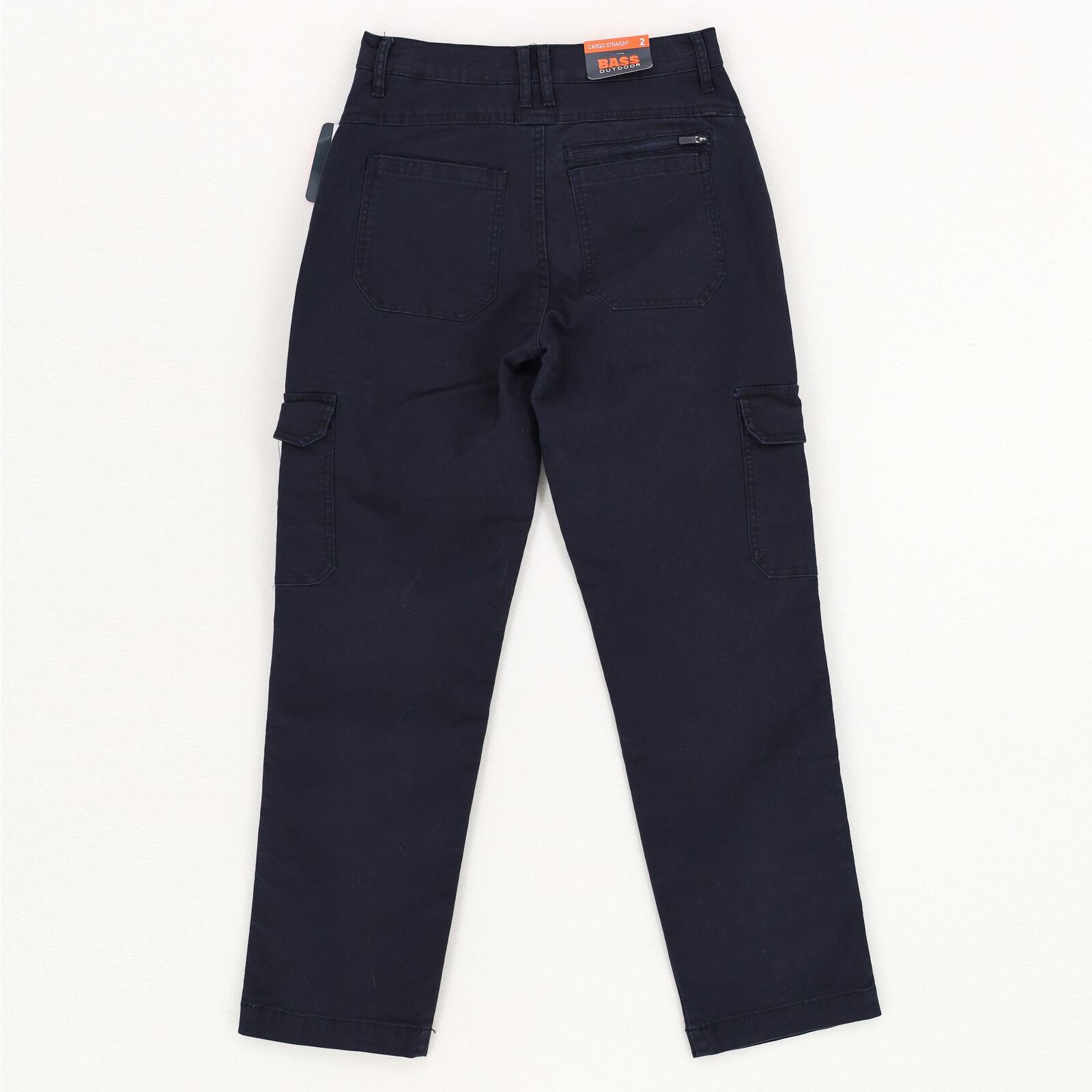 BASS OUTDOOR Women Black Cotton Canvas Outdoor High-Rise Cargo Pants Size US 2 New with tags Great outdoor and functional cargo canvas pants High-rise Side-seam pockets at hips Cargo pockets One patch pocket and one zip pocket at back Zipper closure at center front Belt loops 98% cotton / 2% spandex Machine wash Inseam 29" Waist flat lay 13.5"