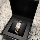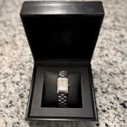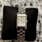 Baume & Mercier Hampton watch with a stainless steel case, measuring 40mm x 24mm. The watch features a silver case and band, a white dial, and is water-resistant up to 30m. It comes with its original box and packaging, and was sold at Tiffany & Co. Stainless steel, 10 year marking. Guaranteed authentic!