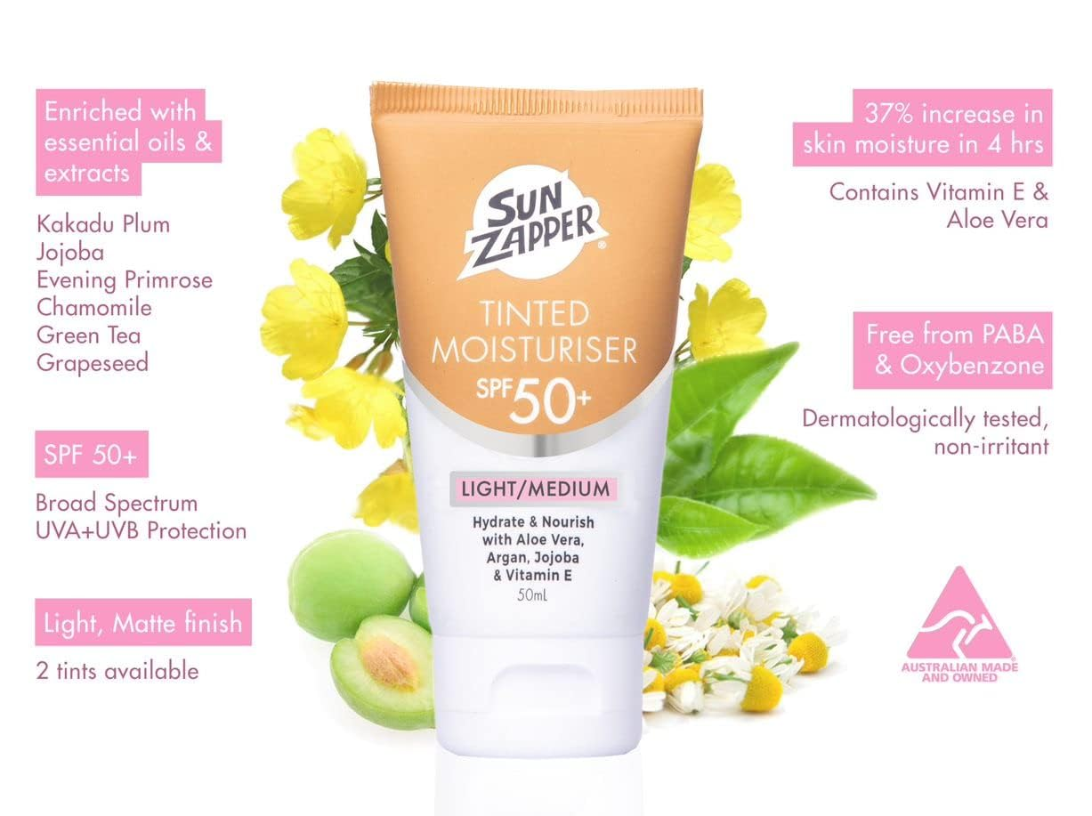 BB Cream Tinted Sunscreen – SPF 50+ Moisturizer with Aloe Vera, Kakadu Plum, Jojoba, Vitamin E – Light/Medium Shade – 50Ml (1.69Oz) – Made in Australia SPF 50+ Helps protect against UVA/UVB radiation and the visible signs of photo-ageing. Helps mask minor skin blemishes and imperfections Light, easy to apply and non greasy. Skin feels soft with a natural satin appearance. Enhanced with natural oils and extracts, including Grapeseed, Jojoba, Evening Primrose, Chamomile, Kakadu Plum and Green Tea to help calm, condition and moisture the skin. Clinically tested to provide 37% increase in skin moisture after 4 hours with Aloe Vera & Vit E. Suitable for all Skin Types No PABA, No Oxybenzone & No Methylisothiazolinone. Product description Sun Zapper SPF 50+ Tinted Moisturiser Light/Medium (BB Cream) is perfect for when you need to mask minor skin blemishes and imperfections, while still protecting your skin from harmful sun rays. No PABA, No Oxybenzone & No Methylisothiazolinone. Indications Provides protection against UVA & UVB Rays Ingredients Water (Aqua), Isopropyl Palmitate, Neopentyl Glycol Diheptanoate, Octocrylene, Butyl Methoxydibenzoylmethane, Ethylhexyl Triazone, 4-Methylbenzylidene Camphor, Hydrated Silica, Stearic Acid, Cetearyl Alcohol, Triethanolamine, Polyglyceryl-3 Diisostearate, Aloe Barbadensis Leaf Juice, Phenoxyethanol, Xanthan Gum, Magnesium Aluminium Silicate, Chamomilla Recutita (Matricaria) Flower Extract, Terminalia Ferdinandiana (Kakadu Plum) Fruit Extract, Camellia Sinensis Leaf Extract, Dimethicone, Oenothera Biennis (Evening Primrose) Oil, Simmondsia Chinensis (Jojoba) Seed Oil, Tocopheryl Acetate, Vitis Vinifera (Grape) Seed Oil, Methylparaben, Fragrance, Butylparaben, Ethylparaben, Propylparaben, Isobutylparaben, Tetrasodium EDTA. May Contain: Titanium Dioxide (CI77891), Iron Oxides (CI 77489, CI77491, CI 77492 & CI 77499), Kaolin (CI 77004). Dimensions 1.57 inches x 1.97 inches x 5.91 inches. Weight: 1.76 oz Specifications Item model number 55 Item dimensions L x W x H 1.97 x 1.57 x 5.91 inches Item Volume 1.69 Fluid Ounces Color Light/Medium Product Dimensions 1.97 x 1.57 x 5.91 inches; 1.76 ounces Active Ingredients function(f) {var _np=(window.P._namespace("DetailPageProductOverviewTemplatesJava"));if(_np.guardFatal){_np.guardFatal(f)(_np);}else{f(_np);}}(function(P) { P.when('A').execute(function(A){ A.on('a:truncate:po-attribute-truncate-4:updated', function(data) { var isTruncated = !data.truncateInstance.getIfTextFits(); var seeMoreElement = document.getElementById('po-attribute-see-more-id-4'); if(seeMoreElement) { seeMoreElement.style.display = isTruncated ? '' : 'none'; } }) }); })); aloe barbadensis leaf juice,camphor,cetearyl alcohol,chamomile,green tea,isopropyl palmitate,jojoba,kaolin,methylparaben,propylparaben,silica,tetrasodium edta,triethanolamine,vitamin e See more Age Range (Description) Adult Manufacturer Sun Care Pty Limited Shipping: Shipped from the USA. Fast delivery within 2–3 days. Payment: PayPal, credit card, bank transfer. Returns: 30-day free return – we cover the shipping cost. Quality: Made in Europe/USA/China. No customs fees. VAT invoice on request. Feedback: You’ll automatically receive positive feedback after payment.