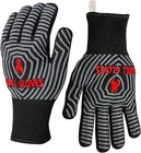 Our grilling gloves are lightweight, flexible, and provide higher . The tight aramid fiber distributes heat effectively. No matter what you grab, you won’t feel it, and the fabric fits snugly around the wrist. Which can keep your hands safe in hot conditions. Premium Triple Material:The BBQ gloves consist of 3 materials. The first material is silicone strips make sure your objects won't slip out in your hands. The second layer is ultra-high-strength aramid fiber with . The third material is polyester-cotton, which provides double protection and comfort. Non-Slip Silicone Design:These oven gloves with food-grade silicone strips ensure that your items don't slip out of your hands. The five-finger design is flexible enough to hold cooking tools, grills, and other hot objects. Multi-Purpose & Great Gift:Our BBQ gloves are perfect for all grilling occasions, fireplace, cooking, baking, microwave, etc. Ideal grilling accessories for men or women. Great grilling gifts for men, father’s day, thanksgiving day, and Christmas. Easy To Clean & Store: Designed with hooks for convenient hanging anywhere. These gloves can be machine-washed or hand-washed. Keep them within reach, ready for the next barbecue. Product description