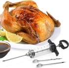 Safe meat injector syringe barrel made from environmental plastic, absolute security to touch food and liquid brine, stainless steel meat marinade needles anti-rust, keep your family members safe and healthy Easily Portable turkey injector kit syringe weight 0.2lbs, almost equal to an egg, easy to carry and store in your pack-sack, it is very practical for your outdoor BBQ grill smoker activities, it hardly takes up your pack-sack’s space Economy Applicable absolutely affordable, plastic marinade injector has same functions but much cheaper than a metal meat syringe, very suitable for temporary use in Thanksgiving, Christmas turkey or daily BBQ party Widely Various Application use for Thanksgiving and Christmas turkey, beef brisket or daily BBQ party; To BBQ fanatics you want to give when Mother and Father’s day, BBQ Season, Thanksgiving and Christmas day comes What You Will Get 1 Flavor Injector, 1 Cleaning brush, 3 Stainless Steel needles, 4 Replace O-rings