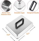BBQ Melting Dome Basting Cover Grill Press Barbecue Weight Kit for Blackstone Packing include:1*Rectangular Basting Cover and 1* heavy duty cast iron grill press. Rectangular Basting Cover Size: 13 x 9.8 Inch. Heavy duty cast iron grill press size: 8.5 x 4.1 inch This square Rectangular Basting Cover is made from high quality stainless steel, cast iron grill press is made from heavy duty cast iron for a compact and sturdy construction that is built to last, making it ideal for everyday outdoor barbecues and more Heavy-duty cast iron grill press with raised bottom grain to leave attractive grill marks on the grill features a premium wood handle that you can just grip in your hand for use The excellent material makes the grill accessories heat and corrosion resistant and durable. The set is easy to clean, you just need to use soapy water to clean it easily. Reduce the stress of your housework The grill accessory set is perfect for indoor cooking, outdoor grilling, outdoor camping and restaurants. Works with any grill for cooking burgers, meats, buns, fajitas, eggs and more We are always committed to the quality of our products and services, if you have any questions about this, please feel free to cont us, we will provide you with solutions as soon as possible Product Description Rectangular Melting Dome and Grill Press Melting Dome: Measure: 13 x 9.8 inch (L x W) Material: Stainless Steel Grill Press: Measure: 8.5 x 4 inch (L x W) Material: Heavy-duty Cast Iron Feature Heat resistance Sturdy, not easy to deform Keep the flavor Non-stick oil Dishwasher safe Smash Burger Press Rough textured surface helps cook food quickly, add delicious and smoky barbecue flavor in your grills Rectangular Basting Cover Rectangular cheese melting dome is professional indoor and outdoor grill tools Keep the Flavor Perfect for burgers, bacon, beef, flatbreads, sandwiches, quesadillas, paninis, chops and steaks Fit for Blackstone grill accessories Fit for any bbq grills, such as flat top, gas, pellet, teppanyaki Fit for home kitchen, family bbq party, back yard, buffet, restaurant, indoor and outdoor Item model number 13 Inch Basting Cover & Grill Press Closure Type Lid Style Compact Is Microwaveable No Number of Pieces 1 Color silver Product Dimensions 13"L x 9"W Material Stainless Steel, Cast Iron Country of Origin China Is Dishwasher Safe Yes Item Weight 0.71 ounces Shape Rectangular Size 13" x 9" Shipping Fast shipping is very important for us. Our expedited US shipping service is FREE. Your order will be shipped within 2 business days upon full payment received. Your order will be delivered within 2-3 business days after the handling time. Warranty & Returns 30-Day FREE Return Policy offered for unsatisfactory items. Options include: Refund or Exchange for another item. Contact us Customer satisfaction is our top priority. If you encounter any issues with our product, please don't hesitate to reach out to us. We are committed to ensuring your satisfaction and will go above and beyond to assist you. Your happiness is our goal! Thank you for shopping at our store.