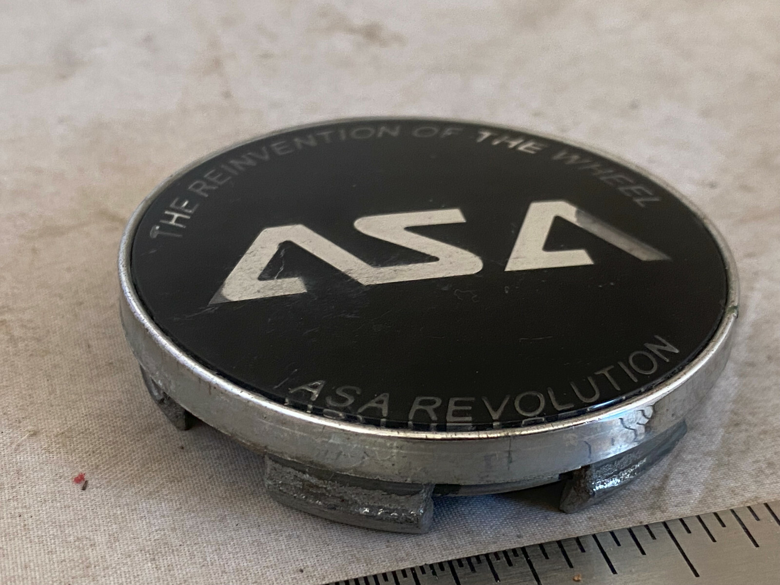 DESCRIPTION This listing is for a SINGLE ASA Revolution The Reinvention of the Wheel by BBS Chrome Black Custom Wheels Wheel Rim Hub Cover Center Cap 8C032 . The cap is snap on from the front. The cap measures 2-3/8" Diameter and 1/2" from prongs to the top of cap. The cap has some scratches and fading to the lettering. Please make sure to match the part number exactly. If the part number does not match your cap it will not fit. TERMS Payment due within 4 days of listing end! FREE Shipping VISIT OUR STORE