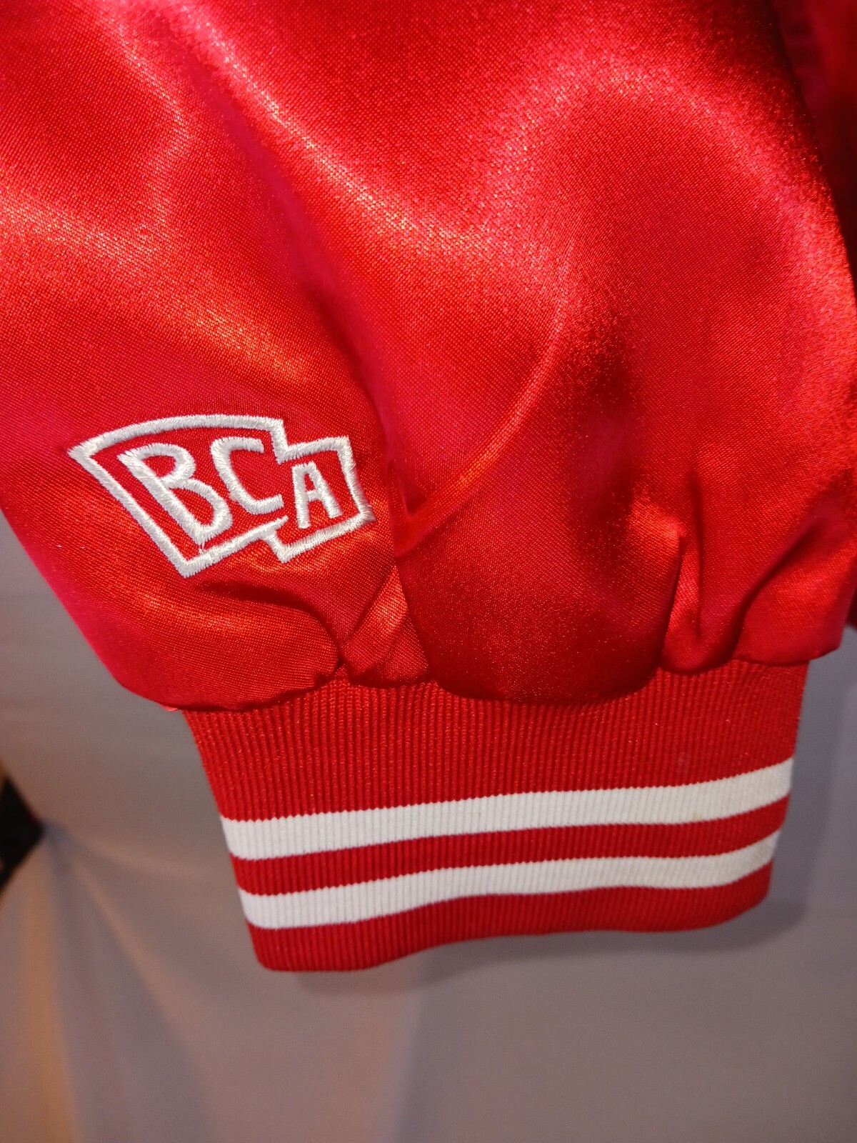 BCA Durham Button Up 2XL SATIN JACKET EMBROIDERY ON BACK. Add some style to your wardrobe with this BCA Durham Button Up SATIN JACKET. The jacket features embroidery on the back and is made of polyester, making it a durable addition to your collection. It's a bomber jacket that is perfect for women who wear size 2XL. The jacket is red in color and has a regular size type. It's a great piece to wear for any occasion, whether it's a casual day out or a formal event.