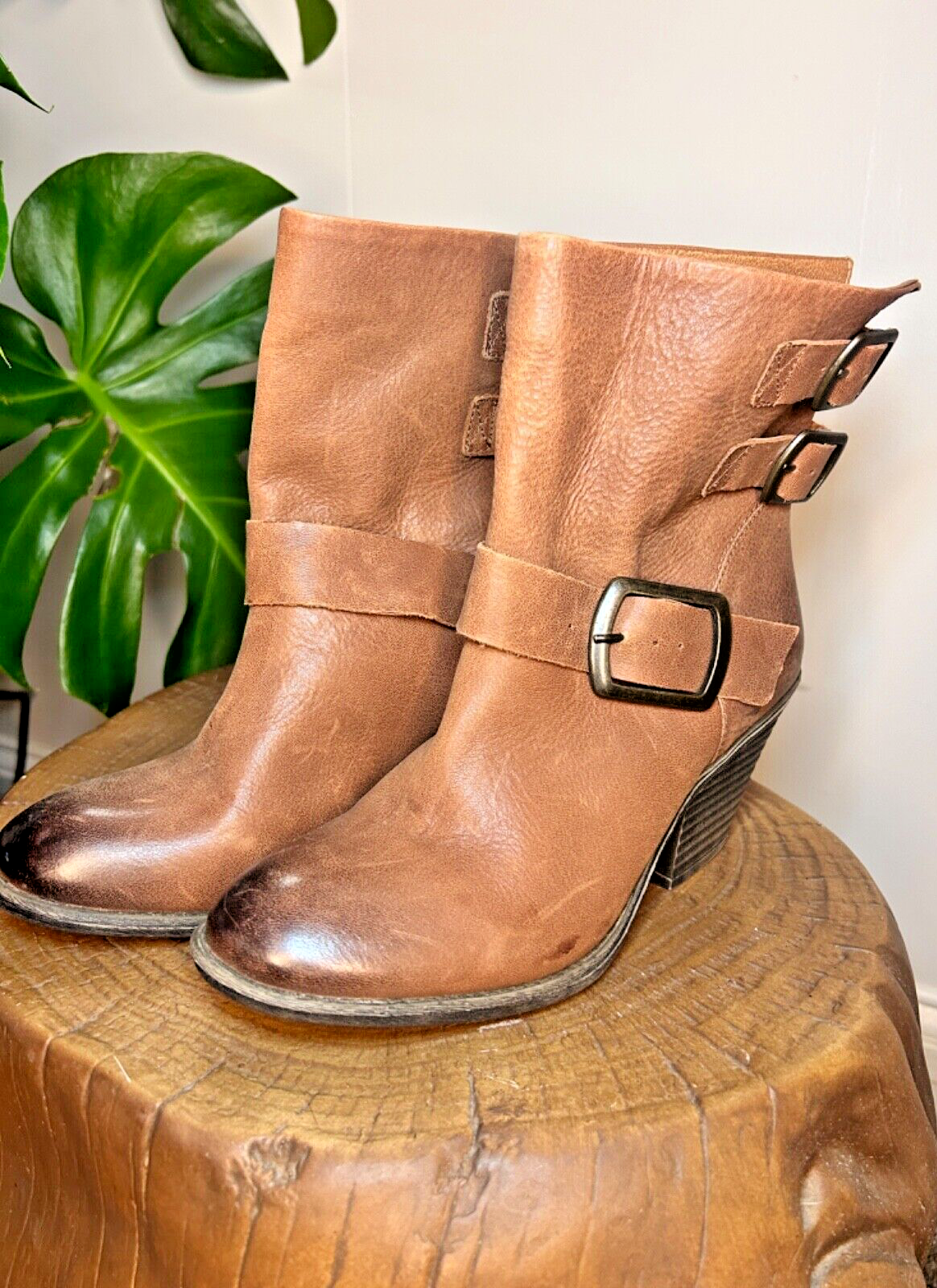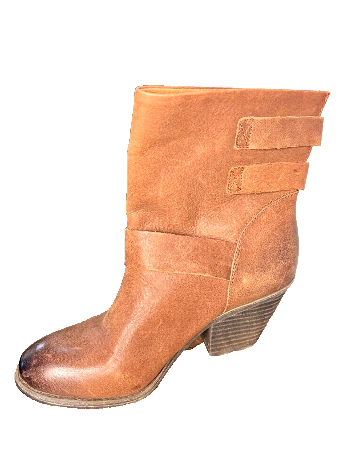 Stylish BCBG booties in a beautiful distressed tan color with multiple buckles. These pull-on boots feature straps and are perfect for travel, casual outings, workwear, and business meetings. The leather upper and outsole provide durability, while the leather insole adds a touch of luxury. These boots are a size 7, which is equivalent to a EU size 37. The solid pattern are the same as the Lucky Brand Tommie Boot. Ideal for the winter, fall, and spring seasons, these BCBG Generation Toni Brown booties are a must-have for any fashion-forward woman.