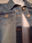 This is a BCBG Girls blue denim vest in size 10, featuring a cooper button-up closure. It is a casual sleeveless jacket with a mid-length style and a collared neckline. Made of cotton denim fabric with polyester lining, it has pockets and a logo accent. The jacket has a modern Y2K style, suitable for summer, fall, and spring seasons, perfect for walking or school activities. In excellent condition inside and outside. Only have been worn once.