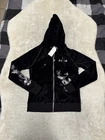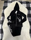 BCBG Max Azria Black Silver Embellish Velour Set Sweat Pants Hoodie Medium Y2K