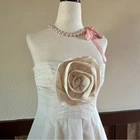 BCBG MaxAzria Strap-Optional Bubble Hem Mini Dress Ivory White - Size 4 NEW with original tags - $298 Absolutely stunning! So simple and so classy: graduation - engagement party - Bridal party - Prom - Rehearsal dinner or just a Summer date, this dress is perfect for it. Strapless, but optional straps are provided and can be added if desired Built-in boning in bust area for support Pleated at bust with a large rosette applique Bubbled hem Hidden back-zip 100% poly w/ poly lining Approx. 25" from underarm to hem and 15.5" armpit to armpit, un-stretched The Rosette is the exact same color as the dress: it does appear darker in my pictures because of the shadows/the light reflection BCBG MaxAzria Ivory White Strap-Optional Bubble Hem Mini Dress with Rosette Appliqué Size 4 NWT