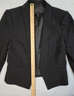 BCBG Maxazria Lloyd Asymmetrical Open Black Cropped Blazer Size Small Item(s) is Preowned in good condition. ~Please look at all descriptions and pictures carefully, and ask all questions before buying. ~Please closely observe all pictures for all loose threads, wear & tear, dirt, stains, spots, or other minor imperfections. Please ask any questions before buying. ~Please know your needed sizes and judge accordingly before buying, for additional help in sizing, and estimating, please ask before buying. ~Please ask for additional pictures, background story, or further descriptions before buying. ~Let's work together for a good purchase experience. All sales are final, by purchasing item(s) you are legally agreeing to that, no refunds. ~International buyers are responsible for any additional international costs and custom issues. ~Thank-you for looking and have a great day! B12