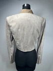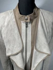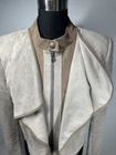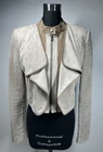 Elevate your wardrobe with this stylish BCBG Maxazria jacket. Crafted with a solid pattern and a short length, this jacket is perfect for both casual and party/cocktail occasions. It features a full zip and snap closure, along with long sleeves and a ruffle accent. The taupe color and faux suede lining material add a touch of sophistication to the jacket, making it a classic addition to your wardrobe. The jacket is made of polyester outer shell material and microfiber fabric type. It is recommended to dry clean only. The jacket has pockets and is available in size M. This regular fit jacket is perfect for women who want to stay warm in style during the fall, winter, and spring seasons. Add this basic jacket to your collection and enjoy the versatility it brings to your wardrobe. (This jacket is in very good condition!)