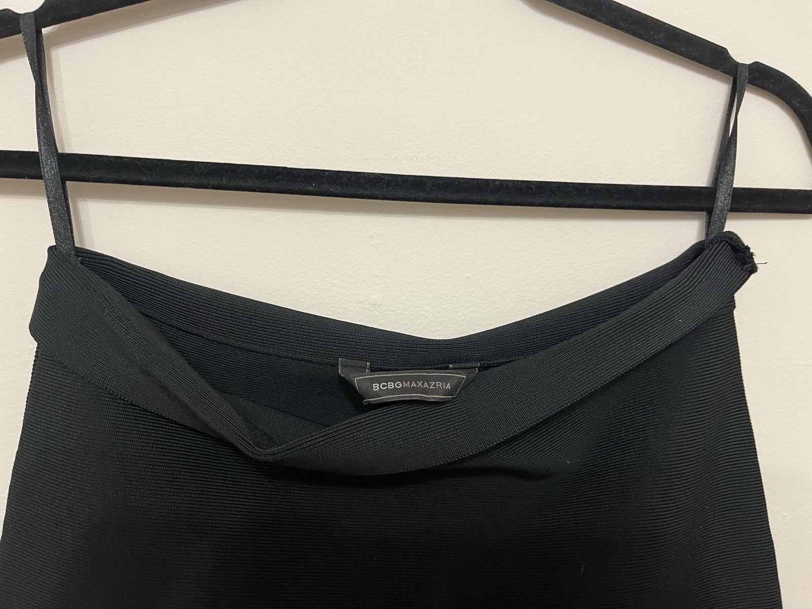 The BCBG Maxazria Black Skirt in size S is a stylish and versatile piece for women. Made from a blend of polyester and nylon, this midi-length skirt features a solid black color with pleated accents, adding a touch of flair to the classic design. Perfect for both casual and dressy occasions, this skirt is a great addition to any wardrobe, offering a flattering silhouette and on-trend style.