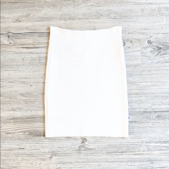 The BCBGMaxazria Women's Size Small Bandage Pencil Skirt in White is a stylish and sleek piece of clothing designed for women. Made with stretchy material, this short skirt features a bandage style that is both flattering and comfortable to wear. The skirt is perfect for a variety of occasions, from casual outings to more formal events, offering a versatile addition to any wardrobe.