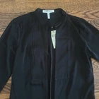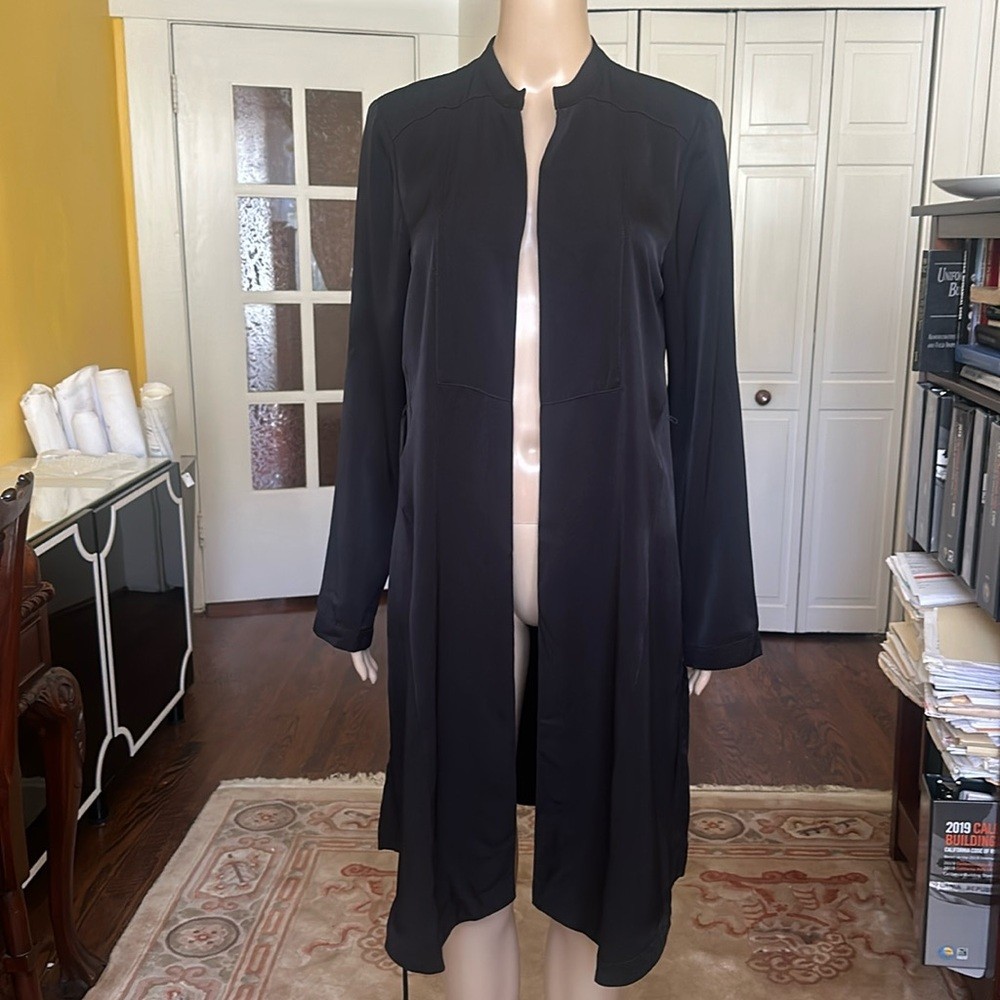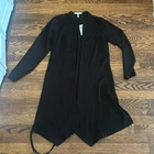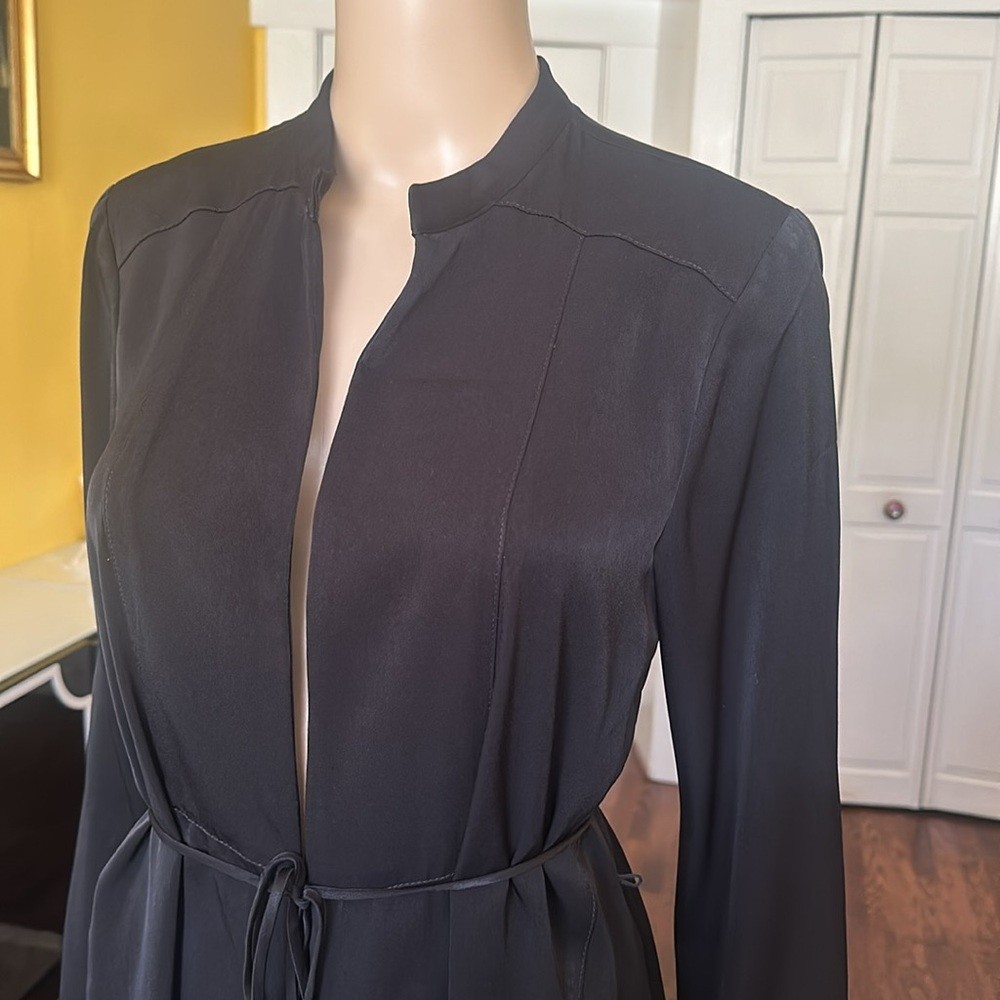 BCBGeneration black satin robe style belted topper / long-line lightweight jacket with asymmetric hem Open front Stand collar Side slits No pockets Size M Approx. measurements garment laid flat: Pit to pit 18" Sleeve length 25" Shoulders 15" Center back length 36-1/2" New with tag. No flaws Hello & Welcome! All sales are final! Pictures are the best part of the description for style/details. Please ask questions before buying, No cancellations. No returns. Read entire description and see all photos. Not responsible for fit . Please double check all measurements against a similar well-fitting garment. I do not accept returns for size. If you need any additional measurements please let me know BEFORE making your purchase. Measurements are approximate / colors may appear slightly different in person Thanks for looking! Check out my other great items, I will gladly combine shipping.