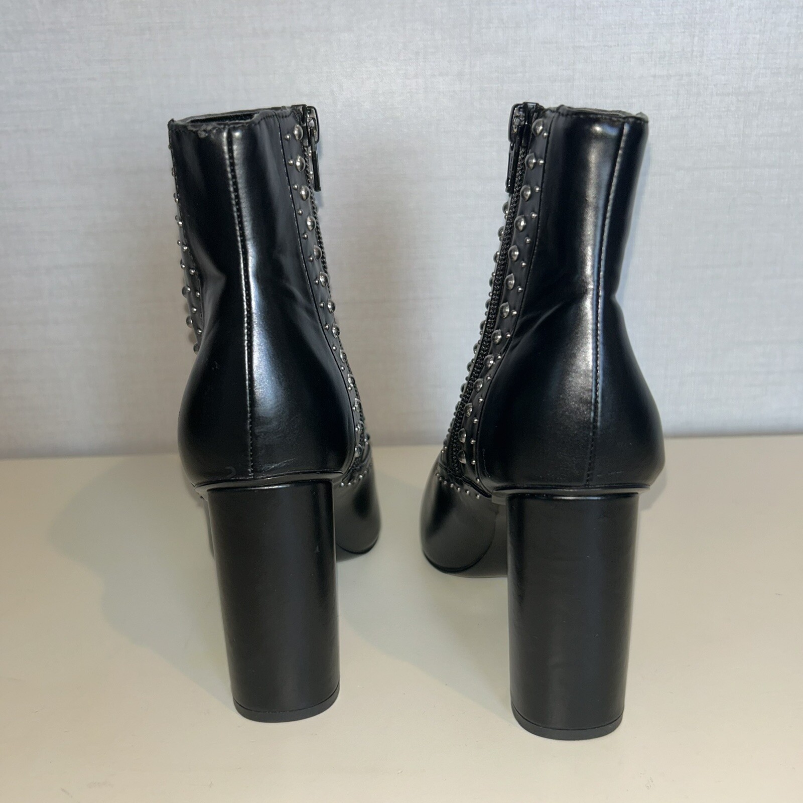 Elevate your style with these stunning BCBGeneration boots in black. With a pointed toe and high block heel, these ankle booties are perfect for any occasion, from casual to formal. The studded accents add a touch of glamour to the faux leather upper material, making them a great addition to your wardrobe. These boots are designed for women and come in size 5B. They are perfect for parties, cocktail events, or simply for everyday wear. The Boots character adds a touch of sophistication to your outfit, while the Comfort and Style category ensures that you will feel confident and comfortable all day long. Don't miss out on these must-have booties from BCBGeneration.