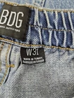 BDG Urban Outfitters Baggy Cargo Skate Jeans Elastic Waist Size 31 Women's D55 In excellent condition BDG Urban Outfitters Baggy Cargo Skate Jeans Elastic Waist Size 31 Women's. Features BDG Urban Outfitters Skate Jeans, baggy fit, elastic waistband with single button and zipper closure, wide leg, 1 side carpenter pocket, 2 side cargo pockets, 2 front and back patch pockets, high rise, Y2K style, utility, Measurements laying flat waist 14" unstretched front rise 11.5" hips 20" inseam 28" leg opening 8.5" Fabric 100% cotton This is a pre-owned item that may show signs of wear. In excellent condition, no flaws.