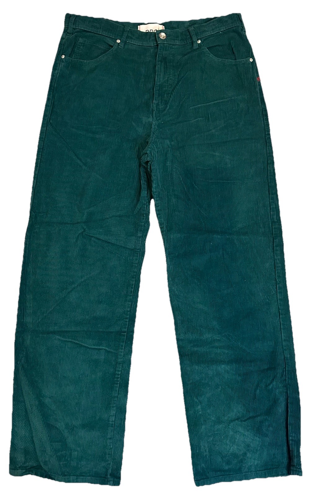 The BDG Women’s Corduroy Wide Leg Pants in size 34 in Teal/Green are a stylish addition to any wardrobe. Made of a comfortable blend of polyester and cotton, these pants feature a solid pattern with a zip and button closure. The wide-leg design and chino style give them a retro and bohemian vibe, perfect for casual occasions, parties, or even travel. Featuring accents like buttons, zippers, and pockets, these lightweight and breathable pants offer both style and comfort for the modern woman. No rips holes or stains! Excellent condition! Measurements: Inseam: 30.5” Rise: 13.5” Waist Laying Flat: 18”