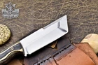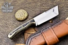 Custom Hand Made D2 STEEL HUNTING KNIFE WITH BLACK HANDLE We offer a shipping discount for More then one purchased . And discount will be apply on combine invoice, Discount will not apply on separate payment. ITEM DETAILS OVER ALL LENGTH 8.0 inches long (Approx) HANDLE LENGTH 4.0 inches long (Approx) BLADE LENGTH 4.0 inches long (Approx) BLADE HARDNESS 58-60 HRC Which Holds The Sharp Edge For Long Time. HANDLE PAKKA WOOD COVER LEATHER SHEATH This Awesome custom made KNIFE has a nice hand forged with the combination of 4340 & 1080 steel. HOW OUR DAMASCUS IS MADE: All our Damascus is real and not just an acid etch. Damascus is a mixture of 1080HC and 4340 nickel carbon. You heat them up together and then fold the bar over and over to get the desired layers, ours are 396 layers. Then you burn the blade in acid, and it turns the nickel satin color and the high carbon turns blackish gray. This is how the layers are exposed to show the layers of the new steel created coined "Damascus". All Damascus is acid etched to show the layers. If you high polish the metal it will be shinny satin like all steels. Only after you burn the sides of the blade with acid do you see the layers of the two steels. Makes sense? After we make our knives we high polish the handles and put an edge on the blade. The high polishing buffs off the acid burned layer of the handle, and the blade edge is sharpened and the acid burned edge becomes satin. You can re-burn the tang of the blade near the handles and the edge of the blade and it will show the layers once more. All our knives are hand made, durable and unique ***** YOU WILL RECEIVED THE SAME KNIFE Qality Standards Our Damascus blades are made from high quality non-stainless steels which rival or exceed any Damascus blade made from the 10 series with 4340. Our Damascus combination has taken years to perfect and has been tested under a variety of application which will offer professional performance in categories of toughness, strength (lateral stress) and edge honing and holding ability. In a 5 spot Rockwell test our blades will average near or close to 58 which offers a perfect balances between its toughness and strength.Our blades due to carbon content need to be regularly treated with wax and/or 3 in 1 oil to maintain its superior quality. Questions if you have any question feel free to send us message we aim to answer all questions within 24 hours Feedback If you are not satisfied with our service please contact us before leaving any negative or natural feedback. We will resolve all issues as quickly as possible. Disclaimer We are not responsible for any injuries associated with the use of our tools. Our products are intended for legal use only by responsible buyers. Therefore, we will not sell our products to anyone under the age of 18. Before bidding please check your country laws as some countries Custom don't allow this. If your purchase is held by Custom Authorities in your country/State we will not be responsible for that and no refund will be issued Shipping We offer a 20% shipping discount for More then one purchased . And discount will be apply on combine invoice, Discount will not apply on separate payment We ship within 24 hours after receiving complete payment but this can be delayed due to week ends or Governments and Religious Festivals . . This is beyond our control and we apologize for this inconvenience. Precautions Our Tools are very sharp so open and use them very carefully We are not responsible for any injuries associated with the use of our tools Tips to Care knife 1. NEVER STORE YOUR KNIFE FOR LONG TIME IN LEATHER SHEATH. 2. LEATHER CAN ABSORB WATER, WHICH WILL RUST THE KNIFE. 3. ALWAYS CLEAN THE BLADE AFTER USING WITH OIL OR WAX