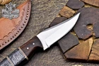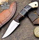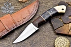 Custom Hand Made D2 STEEL HUNTING KNIFE WITH BEAUTIFUL HANDLE We offer a shipping discount for More then one purchased . And discount will be apply on combine invoice, Discount will not apply on separate payment. ITEM DETAILS OVER ALL LENGTH 8.0 inches long (Approx) HANDLE LENGTH 4.0 inches long (Approx) BLADE LENGTH 4.0 inches long (Approx) BLADE HARDNESS 58-60 HRC Which Holds The Sharp Edge For Long Time. HANDLE WOOD AND BONE COVER LEATHER SHEATH This Awesome custom made KNIFE has a nice hand forged with the combination of 4340 & 1080 steel. HOW OUR DAMASCUS IS MADE: All our Damascus is real and not just an acid etch. Damascus is a mixture of 1080HC and 4340 nickel carbon. You heat them up together and then fold the bar over and over to get the desired layers, ours are 396 layers. Then you burn the blade in acid, and it turns the nickel satin color and the high carbon turns blackish gray. This is how the layers are exposed to show the layers of the new steel created coined "Damascus". All Damascus is acid etched to show the layers. If you high polish the metal it will be shinny satin like all steels. Only after you burn the sides of the blade with acid do you see the layers of the two steels. Makes sense? After we make our knives we high polish the handles and put an edge on the blade. The high polishing buffs off the acid burned layer of the handle, and the blade edge is sharpened and the acid burned edge becomes satin. You can re-burn the tang of the blade near the handles and the edge of the blade and it will show the layers once more. All our knives are hand made, durable and unique ***** YOU WILL RECEIVED THE SAME KNIFE Qality Standards Our Damascus blades are made from high quality non-stainless steels which rival or exceed any Damascus blade made from the 10 series with 4340. Our Damascus combination has taken years to perfect and has been tested under a variety of application which will offer professional performance in categories of toughness, strength (lateral stress) and edge honing and holding ability. In a 5 spot Rockwell test our blades will average near or close to 58 which offers a perfect balances between its toughness and strength.Our blades due to carbon content need to be regularly treated with wax and/or 3 in 1 oil to maintain its superior quality. Questions if you have any question feel free to send us message we aim to answer all questions within 24 hours Feedback If you are not satisfied with our service please contact us before leaving any negative or natural feedback. We will resolve all issues as quickly as possible. Disclaimer We are not responsible for any injuries associated with the use of our tools. Our products are intended for legal use only by responsible buyers. Therefore, we will not sell our products to anyone under the age of 18. Before bidding please check your country laws as some countries Custom don't allow this. If your purchase is held by Custom Authorities in your country/State we will not be responsible for that and no refund will be issued Shipping We offer a 20% shipping discount for More then one purchased . And discount will be apply on combine invoice, Discount will not apply on separate payment We ship within 24 hours after receiving complete payment but this can be delayed due to week ends or Governments and Religious Festivals . . This is beyond our control and we apologize for this inconvenience. Precautions Our Tools are very sharp so open and use them very carefully We are not responsible for any injuries associated with the use of our tools Tips to Care knife 1. NEVER STORE YOUR KNIFE FOR LONG TIME IN LEATHER SHEATH. 2. LEATHER CAN ABSORB WATER, WHICH WILL RUST THE KNIFE. 3. ALWAYS CLEAN THE BLADE AFTER USING WITH OIL OR WAX