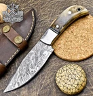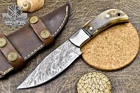 BEAUTIFUL CUSTOM DAMASCUS HANDE MADE HUNTING SKINER KNIFE WIT RAM HORN HANDLE