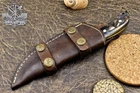 Custom Hand Made DAMASCUS STEEL HUNTING KNIFE WITH RAM HORN HANDLE We offer a shipping discount for More then one purchased . And discount will be apply on combine invoice, Discount will not apply on separate payment. ITEM DETAILS OVER ALL LENGTH 8.0 inches long (Approx) HANDLE LENGTH 4.0 inches long (Approx) BLADE LENGTH 4.0 inches long (Approx) BLADE HARDNESS 58-60 HRC Which Holds The Sharp Edge For Long Time. HANDLE RAM HORN COVER LEATHER SHEATH This Awesome custom made KNIFE has a nice hand forged with the combination of 4340 & 1080 steel. HOW OUR DAMASCUS IS MADE: All our Damascus is real and not just an acid etch. Damascus is a mixture of 1080HC and 4340 nickel carbon. You heat them up together and then fold the bar over and over to get the desired layers, ours are 396 layers. Then you burn the blade in acid, and it turns the nickel satin color and the high carbon turns blackish gray. This is how the layers are exposed to show the layers of the new steel created coined "Damascus". All Damascus is acid etched to show the layers. If you high polish the metal it will be shinny satin like all steels. Only after you burn the sides of the blade with acid do you see the layers of the two steels. Makes sense? After we make our knives we high polish the handles and put an edge on the blade. The high polishing buffs off the acid burned layer of the handle, and the blade edge is sharpened and the acid burned edge becomes satin. You can re-burn the tang of the blade near the handles and the edge of the blade and it will show the layers once more. All our knives are hand made, durable and unique ***** YOU WILL RECEIVED THE SAME KNIFE Qality Standards Our Damascus blades are made from high quality non-stainless steels which rival or exceed any Damascus blade made from the 10 series with 4340. Our Damascus combination has taken years to perfect and has been tested under a variety of application which will offer professional performance in categories of toughness, strength (lateral stress) and edge honing and holding ability. In a 5 spot Rockwell test our blades will average near or close to 58 which offers a perfect balances between its toughness and strength.Our blades due to carbon content need to be regularly treated with wax and/or 3 in 1 oil to maintain its superior quality. Questions if you have any question feel free to send us message we aim to answer all questions within 24 hours Feedback If you are not satisfied with our service please contact us before leaving any negative or natural feedback. We will resolve all issues as quickly as possible. Disclaimer We are not responsible for any injuries associated with the use of our tools. Our products are intended for legal use only by responsible buyers. Therefore, we will not sell our products to anyone under the age of 18. Before bidding please check your country laws as some countries Custom don't allow this. If your purchase is held by Custom Authorities in your country/State we will not be responsible for that and no refund will be issued Shipping We offer a 20% shipping discount for More then one purchased . And discount will be apply on combine invoice, Discount will not apply on separate payment We ship within 24 hours after receiving complete payment but this can be delayed due to week ends or Governments and Religious Festivals . . This is beyond our control and we apologize for this inconvenience. Precautions Our Tools are very sharp so open and use them very carefully We are not responsible for any injuries associated with the use of our tools Tips to Care knife 1. NEVER STORE YOUR KNIFE FOR LONG TIME IN LEATHER SHEATH. 2. LEATHER CAN ABSORB WATER, WHICH WILL RUST THE KNIFE. 3. ALWAYS CLEAN THE BLADE AFTER USING WITH OIL OR WAX