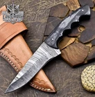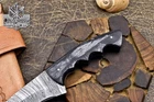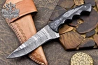 Custom Hand Made DAMASCUS STEEL HUNTING KNIFE WITH BLACK HANDLE We offer a shipping discount for More then one purchased . And discount will be apply on combine invoice, Discount will not apply on separate payment. ITEM DETAILS OVER ALL LENGTH 8.0 inches long (Approx) HANDLE LENGTH 4.0 inches long (Approx) BLADE LENGTH 4.0 inches long (Approx) BLADE HARDNESS 58-60 HRC Which Holds The Sharp Edge For Long Time. HANDLE BLACK HANDLE COVER LEATHER SHEATH This Awesome custom made KNIFE has a nice hand forged with the combination of 4340 & 1080 steel. HOW OUR DAMASCUS IS MADE: All our Damascus is real and not just an acid etch. Damascus is a mixture of 1080HC and 4340 nickel carbon. You heat them up together and then fold the bar over and over to get the desired layers, ours are 396 layers. Then you burn the blade in acid, and it turns the nickel satin color and the high carbon turns blackish gray. This is how the layers are exposed to show the layers of the new steel created coined "Damascus". All Damascus is acid etched to show the layers. If you high polish the metal it will be shinny satin like all steels. Only after you burn the sides of the blade with acid do you see the layers of the two steels. Makes sense? After we make our knives we high polish the handles and put an edge on the blade. The high polishing buffs off the acid burned layer of the handle, and the blade edge is sharpened and the acid burned edge becomes satin. You can re-burn the tang of the blade near the handles and the edge of the blade and it will show the layers once more. All our knives are hand made, durable and unique ***** YOU WILL RECEIVED THE SAME KNIFE Qality Standards Our Damascus blades are made from high quality non-stainless steels which rival or exceed any Damascus blade made from the 10 series with 4340. Our Damascus combination has taken years to perfect and has been tested under a variety of application which will offer professional performance in categories of toughness, strength (lateral stress) and edge honing and holding ability. In a 5 spot Rockwell test our blades will average near or close to 58 which offers a perfect balances between its toughness and strength.Our blades due to carbon content need to be regularly treated with wax and/or 3 in 1 oil to maintain its superior quality. Questions if you have any question feel free to send us message we aim to answer all questions within 24 hours Feedback If you are not satisfied with our service please contact us before leaving any negative or natural feedback. We will resolve all issues as quickly as possible. Disclaimer We are not responsible for any injuries associated with the use of our tools. Our products are intended for legal use only by responsible buyers. Therefore, we will not sell our products to anyone under the age of 18. Before bidding please check your country laws as some countries Custom don't allow this. If your purchase is held by Custom Authorities in your country/State we will not be responsible for that and no refund will be issued Shipping We offer a 20% shipping discount for More then one purchased . And discount will be apply on combine invoice, Discount will not apply on separate payment We ship within 24 hours after receiving complete payment but this can be delayed due to week ends or Governments and Religious Festivals . . This is beyond our control and we apologize for this inconvenience. Precautions Our Tools are very sharp so open and use them very carefully We are not responsible for any injuries associated with the use of our tools Tips to Care knife 1. NEVER STORE YOUR KNIFE FOR LONG TIME IN LEATHER SHEATH. 2. LEATHER CAN ABSORB WATER, WHICH WILL RUST THE KNIFE. 3. ALWAYS CLEAN THE BLADE AFTER USING WITH OIL OR WAX