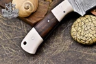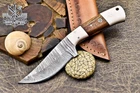 Custom Hand Made DAMASCUS STEEL HUNTING KNIFE WITH WOOD & SHEET HANDLE We offer a shipping discount for More then one purchased . And discount will be apply on combine invoice, Discount will not apply on separate payment. ITEM DETAILS OVER ALL LENGTH 8.0 inches long (Approx) HANDLE LENGTH 4.0 inches long (Approx) BLADE LENGTH 4.0 inches long (Approx) BLADE HARDNESS 58-60 HRC Which Holds The Sharp Edge For Long Time. HANDLE WOOD & SHEET COVER LEATHER SHEATH This Awesome custom made KNIFE has a nice hand forged with the combination of 4340 & 1080 steel. HOW OUR DAMASCUS IS MADE: All our Damascus is real and not just an acid etch. Damascus is a mixture of 1080HC and 4340 nickel carbon. You heat them up together and then fold the bar over and over to get the desired layers, ours are 396 layers. Then you burn the blade in acid, and it turns the nickel satin color and the high carbon turns blackish gray. This is how the layers are exposed to show the layers of the new steel created coined "Damascus". All Damascus is acid etched to show the layers. If you high polish the metal it will be shinny satin like all steels. Only after you burn the sides of the blade with acid do you see the layers of the two steels. Makes sense? After we make our knives we high polish the handles and put an edge on the blade. The high polishing buffs off the acid burned layer of the handle, and the blade edge is sharpened and the acid burned edge becomes satin. You can re-burn the tang of the blade near the handles and the edge of the blade and it will show the layers once more. All our knives are hand made, durable and unique ***** YOU WILL RECEIVED THE SAME KNIFE Qality Standards Our Damascus blades are made from high quality non-stainless steels which rival or exceed any Damascus blade made from the 10 series with 4340. Our Damascus combination has taken years to perfect and has been tested under a variety of application which will offer professional performance in categories of toughness, strength (lateral stress) and edge honing and holding ability. In a 5 spot Rockwell test our blades will average near or close to 58 which offers a perfect balances between its toughness and strength.Our blades due to carbon content need to be regularly treated with wax and/or 3 in 1 oil to maintain its superior quality. Questions if you have any question feel free to send us message we aim to answer all questions within 24 hours Feedback If you are not satisfied with our service please contact us before leaving any negative or natural feedback. We will resolve all issues as quickly as possible. Disclaimer We are not responsible for any injuries associated with the use of our tools. Our products are intended for legal use only by responsible buyers. Therefore, we will not sell our products to anyone under the age of 18. Before bidding please check your country laws as some countries Custom don't allow this. If your purchase is held by Custom Authorities in your country/State we will not be responsible for that and no refund will be issued Shipping We offer a 20% shipping discount for More then one purchased . And discount will be apply on combine invoice, Discount will not apply on separate payment We ship within 24 hours after receiving complete payment but this can be delayed due to week ends or Governments and Religious Festivals . . This is beyond our control and we apologize for this inconvenience. Precautions Our Tools are very sharp so open and use them very carefully We are not responsible for any injuries associated with the use of our tools Tips to Care knife 1. NEVER STORE YOUR KNIFE FOR LONG TIME IN LEATHER SHEATH. 2. LEATHER CAN ABSORB WATER, WHICH WILL RUST THE KNIFE. 3. ALWAYS CLEAN THE BLADE AFTER USING WITH OIL OR WAX