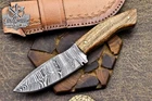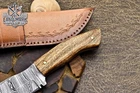 Custom Hand Made DAMASCUS STEEL HUNTING KNIFE WITH ROSE WOOD HANDLE We offer a shipping discount for More then one purchased . And discount will be apply on combine invoice, Discount will not apply on separate payment. ITEM DETAILS OVER ALL LENGTH 8.0 inches long (Approx) HANDLE LENGTH 4.0 inches long (Approx) BLADE LENGTH 4.0 inches long (Approx) BLADE HARDNESS 58-60 HRC Which Holds The Sharp Edge For Long Time. HANDLE ROSE WOOD COVER LEATHER SHEATH This Awesome custom made KNIFE has a nice hand forged with the combination of 4340 & 1080 steel. HOW OUR DAMASCUS IS MADE: All our Damascus is real and not just an acid etch. Damascus is a mixture of 1080HC and 4340 nickel carbon. You heat them up together and then fold the bar over and over to get the desired layers, ours are 396 layers. Then you burn the blade in acid, and it turns the nickel satin color and the high carbon turns blackish gray. This is how the layers are exposed to show the layers of the new steel created coined "Damascus". All Damascus is acid etched to show the layers. If you high polish the metal it will be shinny satin like all steels. Only after you burn the sides of the blade with acid do you see the layers of the two steels. Makes sense? After we make our knives we high polish the handles and put an edge on the blade. The high polishing buffs off the acid burned layer of the handle, and the blade edge is sharpened and the acid burned edge becomes satin. You can re-burn the tang of the blade near the handles and the edge of the blade and it will show the layers once more. All our knives are hand made, durable and unique ***** YOU WILL RECEIVED THE SAME KNIFE Qality Standards Our Damascus blades are made from high quality non-stainless steels which rival or exceed any Damascus blade made from the 10 series with 4340. Our Damascus combination has taken years to perfect and has been tested under a variety of application which will offer professional performance in categories of toughness, strength (lateral stress) and edge honing and holding ability. In a 5 spot Rockwell test our blades will average near or close to 58 which offers a perfect balances between its toughness and strength.Our blades due to carbon content need to be regularly treated with wax and/or 3 in 1 oil to maintain its superior quality. Questions if you have any question feel free to send us message we aim to answer all questions within 24 hours Feedback If you are not satisfied with our service please contact us before leaving any negative or natural feedback. We will resolve all issues as quickly as possible. Disclaimer We are not responsible for any injuries associated with the use of our tools. Our products are intended for legal use only by responsible buyers. Therefore, we will not sell our products to anyone under the age of 18. Before bidding please check your country laws as some countries Custom don't allow this. If your purchase is held by Custom Authorities in your country/State we will not be responsible for that and no refund will be issued Shipping We offer a 20% shipping discount for More then one purchased . And discount will be apply on combine invoice, Discount will not apply on separate payment We ship within 24 hours after receiving complete payment but this can be delayed due to week ends or Governments and Religious Festivals . . This is beyond our control and we apologize for this inconvenience. Precautions Our Tools are very sharp so open and use them very carefully We are not responsible for any injuries associated with the use of our tools Tips to Care knife 1. NEVER STORE YOUR KNIFE FOR LONG TIME IN LEATHER SHEATH. 2. LEATHER CAN ABSORB WATER, WHICH WILL RUST THE KNIFE. 3. ALWAYS CLEAN THE BLADE AFTER USING WITH OIL OR WAX