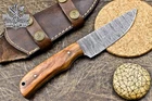 Custom Hand Made DAMASCUS STEEL HUNTING KNIFE WITH OLIVE WOOD HANDLE We offer a shipping discount for More then one purchased . And discount will be apply on combine invoice, Discount will not apply on separate payment. ITEM DETAILS OVER ALL LENGTH 8.0 inches long (Approx) HANDLE LENGTH 4.0 inches long (Approx) BLADE LENGTH 4.0 inches long (Approx) BLADE HARDNESS 58-60 HRC Which Holds The Sharp Edge For Long Time. HANDLE OLIVE WOOD COVER LEATHER SHEATH This Awesome custom made KNIFE has a nice hand forged with the combination of 4340 & 1080 steel. HOW OUR DAMASCUS IS MADE: All our Damascus is real and not just an acid etch. Damascus is a mixture of 1080HC and 4340 nickel carbon. You heat them up together and then fold the bar over and over to get the desired layers, ours are 396 layers. Then you burn the blade in acid, and it turns the nickel satin color and the high carbon turns blackish gray. This is how the layers are exposed to show the layers of the new steel created coined "Damascus". All Damascus is acid etched to show the layers. If you high polish the metal it will be shinny satin like all steels. Only after you burn the sides of the blade with acid do you see the layers of the two steels. Makes sense? After we make our knives we high polish the handles and put an edge on the blade. The high polishing buffs off the acid burned layer of the handle, and the blade edge is sharpened and the acid burned edge becomes satin. You can re-burn the tang of the blade near the handles and the edge of the blade and it will show the layers once more. All our knives are hand made, durable and unique ***** YOU WILL RECEIVED THE SAME KNIFE Qality Standards Our Damascus blades are made from high quality non-stainless steels which rival or exceed any Damascus blade made from the 10 series with 4340. Our Damascus combination has taken years to perfect and has been tested under a variety of application which will offer professional performance in categories of toughness, strength (lateral stress) and edge honing and holding ability. In a 5 spot Rockwell test our blades will average near or close to 58 which offers a perfect balances between its toughness and strength.Our blades due to carbon content need to be regularly treated with wax and/or 3 in 1 oil to maintain its superior quality. Questions if you have any question feel free to send us message we aim to answer all questions within 24 hours Feedback If you are not satisfied with our service please contact us before leaving any negative or natural feedback. We will resolve all issues as quickly as possible. Disclaimer We are not responsible for any injuries associated with the use of our tools. Our products are intended for legal use only by responsible buyers. Therefore, we will not sell our products to anyone under the age of 18. Before bidding please check your country laws as some countries Custom don't allow this. If your purchase is held by Custom Authorities in your country/State we will not be responsible for that and no refund will be issued Shipping We offer a 20% shipping discount for More then one purchased . And discount will be apply on combine invoice, Discount will not apply on separate payment We ship within 24 hours after receiving complete payment but this can be delayed due to week ends or Governments and Religious Festivals . . This is beyond our control and we apologize for this inconvenience. Precautions Our Tools are very sharp so open and use them very carefully We are not responsible for any injuries associated with the use of our tools Tips to Care knife 1. NEVER STORE YOUR KNIFE FOR LONG TIME IN LEATHER SHEATH. 2. LEATHER CAN ABSORB WATER, WHICH WILL RUST THE KNIFE. 3. ALWAYS CLEAN THE BLADE AFTER USING WITH OIL OR WAX