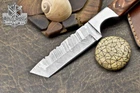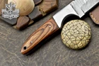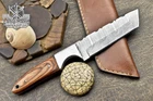 Custom Hand Made D2 STEEL HUNTING KNIFE WITH PAKKA WOOD HANDLE We offer a shipping discount for More then one purchased . And discount will be apply on combine invoice, Discount will not apply on separate payment. ITEM DETAILS OVER ALL LENGTH 8.0 inches long (Approx) HANDLE LENGTH 4.0 inches long (Approx) BLADE LENGTH 4.0 inches long (Approx) BLADE HARDNESS 58-60 HRC Which Holds The Sharp Edge For Long Time. HANDLE PAKKA WOOD COVER LEATHER SHEATH This Awesome custom made KNIFE has a nice hand forged with the combination of 4340 & 1080 steel. HOW OUR DAMASCUS IS MADE: All our Damascus is real and not just an acid etch. Damascus is a mixture of 1080HC and 4340 nickel carbon. You heat them up together and then fold the bar over and over to get the desired layers, ours are 396 layers. Then you burn the blade in acid, and it turns the nickel satin color and the high carbon turns blackish gray. This is how the layers are exposed to show the layers of the new steel created coined "Damascus". All Damascus is acid etched to show the layers. If you high polish the metal it will be shinny satin like all steels. Only after you burn the sides of the blade with acid do you see the layers of the two steels. Makes sense? After we make our knives we high polish the handles and put an edge on the blade. The high polishing buffs off the acid burned layer of the handle, and the blade edge is sharpened and the acid burned edge becomes satin. You can re-burn the tang of the blade near the handles and the edge of the blade and it will show the layers once more. All our knives are hand made, durable and unique ***** YOU WILL RECEIVED THE SAME KNIFE Qality Standards Our Damascus blades are made from high quality non-stainless steels which rival or exceed any Damascus blade made from the 10 series with 4340. Our Damascus combination has taken years to perfect and has been tested under a variety of application which will offer professional performance in categories of toughness, strength (lateral stress) and edge honing and holding ability. In a 5 spot Rockwell test our blades will average near or close to 58 which offers a perfect balances between its toughness and strength.Our blades due to carbon content need to be regularly treated with wax and/or 3 in 1 oil to maintain its superior quality. Questions if you have any question feel free to send us message we aim to answer all questions within 24 hours Feedback If you are not satisfied with our service please contact us before leaving any negative or natural feedback. We will resolve all issues as quickly as possible. Disclaimer We are not responsible for any injuries associated with the use of our tools. Our products are intended for legal use only by responsible buyers. Therefore, we will not sell our products to anyone under the age of 18. Before bidding please check your country laws as some countries Custom don't allow this. If your purchase is held by Custom Authorities in your country/State we will not be responsible for that and no refund will be issued Shipping We offer a 20% shipping discount for More then one purchased . And discount will be apply on combine invoice, Discount will not apply on separate payment We ship within 24 hours after receiving complete payment but this can be delayed due to week ends or Governments and Religious Festivals . . This is beyond our control and we apologize for this inconvenience. Precautions Our Tools are very sharp so open and use them very carefully We are not responsible for any injuries associated with the use of our tools Tips to Care knife 1. NEVER STORE YOUR KNIFE FOR LONG TIME IN LEATHER SHEATH. 2. LEATHER CAN ABSORB WATER, WHICH WILL RUST THE KNIFE. 3. ALWAYS CLEAN THE BLADE AFTER USING WITH OIL OR WAX