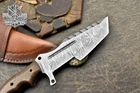 Custom Hand Made DAMASCUS STEEL HUNTING TRACKERE KNIFE WITH MICARTA HANDLE We offer a shipping discount for More then one purchased . And discount will be apply on combine invoice, Discount will not apply on separate payment. ITEM DETAILS OVER ALL LENGTH 11.0 inches long (Approx) HANDLE LENGTH 5.0inches long (Approx) BLADE LENGTH 6.0 inches long (Approx) BLADE HARDNESS 58-60 HRC Which Holds The Sharp Edge For Long Time. HANDLE MICARTA COVER LEATHER SHEATH This Awesome custom made KNIFE has a nice hand forged with the combination of 4340 & 1080 steel. HOW OUR DAMASCUS IS MADE: All our Damascus is real and not just an acid etch. Damascus is a mixture of 1080HC and 4340 nickel carbon. You heat them up together and then fold the bar over and over to get the desired layers, ours are 396 layers. Then you burn the blade in acid, and it turns the nickel satin color and the high carbon turns blackish gray. This is how the layers are exposed to show the layers of the new steel created coined "Damascus". All Damascus is acid etched to show the layers. If you high polish the metal it will be shinny satin like all steels. Only after you burn the sides of the blade with acid do you see the layers of the two steels. Makes sense? After we make our knives we high polish the handles and put an edge on the blade. The high polishing buffs off the acid burned layer of the handle, and the blade edge is sharpened and the acid burned edge becomes satin. You can re-burn the tang of the blade near the handles and the edge of the blade and it will show the layers once more. All our knives are hand made, durable and unique ***** YOU WILL RECEIVED THE SAME KNIFE Qality Standards Our Damascus blades are made from high quality non-stainless steels which rival or exceed any Damascus blade made from the 10 series with 4340. Our Damascus combination has taken years to perfect and has been tested under a variety of application which will offer professional performance in categories of toughness, strength (lateral stress) and edge honing and holding ability. In a 5 spot Rockwell test our blades will average near or close to 58 which offers a perfect balances between its toughness and strength.Our blades due to carbon content need to be regularly treated with wax and/or 3 in 1 oil to maintain its superior quality. Questions if you have any question feel free to send us message we aim to answer all questions within 24 hours Feedback If you are not satisfied with our service please contact us before leaving any negative or natural feedback. We will resolve all issues as quickly as possible. Disclaimer We are not responsible for any injuries associated with the use of our tools. Our products are intended for legal use only by responsible buyers. Therefore, we will not sell our products to anyone under the age of 18. Before bidding please check your country laws as some countries Custom don't allow this. If your purchase is held by Custom Authorities in your country/State we will not be responsible for that and no refund will be issued Shipping We offer a 20% shipping discount for More then one purchased . And discount will be apply on combine invoice, Discount will not apply on separate payment We ship within 24 hours after receiving complete payment but this can be delayed due to week ends or Governments and Religious Festivals . . This is beyond our control and we apologize for this inconvenience. Precautions Our Tools are very sharp so open and use them very carefully We are not responsible for any injuries associated with the use of our tools Tips to Care knife 1. NEVER STORE YOUR KNIFE FOR LONG TIME IN LEATHER SHEATH. 2. LEATHER CAN ABSORB WATER, WHICH WILL RUST THE KNIFE. 3. ALWAYS CLEAN THE BLADE AFTER USING WITH OIL OR WAX