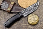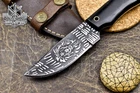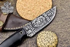 Custom Hand Made DAMASCUS STEEL HUNTING KNIFE WITH BLACK HANDLE We offer a shipping discount for More then one purchased . And discount will be apply on combine invoice, Discount will not apply on separate payment. ITEM DETAILS OVER ALL LENGTH 8.0 inches long (Approx) HANDLE LENGTH 4.0 inches long (Approx) BLADE LENGTH 4.0 inches long (Approx) BLADE HARDNESS 58-60 HRC Which Holds The Sharp Edge For Long Time. HANDLE BLACK COVER LEATHER SHEATH This Awesome custom made KNIFE has a nice hand forged with the combination of 4340 & 1080 steel. HOW OUR DAMASCUS IS MADE: All our Damascus is real and not just an acid etch. Damascus is a mixture of 1080HC and 4340 nickel carbon. You heat them up together and then fold the bar over and over to get the desired layers, ours are 396 layers. Then you burn the blade in acid, and it turns the nickel satin color and the high carbon turns blackish gray. This is how the layers are exposed to show the layers of the new steel created coined "Damascus". All Damascus is acid etched to show the layers. If you high polish the metal it will be shinny satin like all steels. Only after you burn the sides of the blade with acid do you see the layers of the two steels. Makes sense? After we make our knives we high polish the handles and put an edge on the blade. The high polishing buffs off the acid burned layer of the handle, and the blade edge is sharpened and the acid burned edge becomes satin. You can re-burn the tang of the blade near the handles and the edge of the blade and it will show the layers once more. All our knives are hand made, durable and unique ***** YOU WILL RECEIVED THE SAME KNIFE Qality Standards Our Damascus blades are made from high quality non-stainless steels which rival or exceed any Damascus blade made from the 10 series with 4340. Our Damascus combination has taken years to perfect and has been tested under a variety of application which will offer professional performance in categories of toughness, strength (lateral stress) and edge honing and holding ability. In a 5 spot Rockwell test our blades will average near or close to 58 which offers a perfect balances between its toughness and strength.Our blades due to carbon content need to be regularly treated with wax and/or 3 in 1 oil to maintain its superior quality. Questions if you have any question feel free to send us message we aim to answer all questions within 24 hours Feedback If you are not satisfied with our service please contact us before leaving any negative or natural feedback. We will resolve all issues as quickly as possible. Disclaimer We are not responsible for any injuries associated with the use of our tools. Our products are intended for legal use only by responsible buyers. Therefore, we will not sell our products to anyone under the age of 18. Before bidding please check your country laws as some countries Custom don't allow this. If your purchase is held by Custom Authorities in your country/State we will not be responsible for that and no refund will be issued Shipping We offer a 20% shipping discount for More then one purchased . And discount will be apply on combine invoice, Discount will not apply on separate payment We ship within 24 hours after receiving complete payment but this can be delayed due to week ends or Governments and Religious Festivals . . This is beyond our control and we apologize for this inconvenience. Precautions Our Tools are very sharp so open and use them very carefully We are not responsible for any injuries associated with the use of our tools Tips to Care knife 1. NEVER STORE YOUR KNIFE FOR LONG TIME IN LEATHER SHEATH. 2. LEATHER CAN ABSORB WATER, WHICH WILL RUST THE KNIFE. 3. ALWAYS CLEAN THE BLADE AFTER USING WITH OIL OR WAX