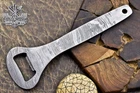Custom Hand Made DAMASCUS STEEL BOTTEL OPNER We offer a shipping discount for More then one purchased . And discount will be apply on combine invoice, Discount will not apply on separate payment. ITEM DETAILS OVER ALL LENGTH 5.5 inches long (Approx) BLADE HARDNESS 58-60 HRC Which Holds The Sharp Edge For Long Time. HANDLE DAMASCUS COVER NO This Awesome custom made KNIFE has a nice hand forged with the combination of 4340 & 1080 steel. HOW OUR DAMASCUS IS MADE: All our Damascus is real and not just an acid etch. Damascus is a mixture of 1080HC and 4340 nickel carbon. You heat them up together and then fold the bar over and over to get the desired layers, ours are 396 layers. Then you burn the blade in acid, and it turns the nickel satin color and the high carbon turns blackish gray. This is how the layers are exposed to show the layers of the new steel created coined "Damascus". All Damascus is acid etched to show the layers. If you high polish the metal it will be shinny satin like all steels. Only after you burn the sides of the blade with acid do you see the layers of the two steels. Makes sense? After we make our knives we high polish the handles and put an edge on the blade. The high polishing buffs off the acid burned layer of the handle, and the blade edge is sharpened and the acid burned edge becomes satin. You can re-burn the tang of the blade near the handles and the edge of the blade and it will show the layers once more. All our knives are hand made, durable and unique ***** YOU WILL RECEIVED THE SAME KNIFE Qality Standards Our Damascus blades are made from high quality non-stainless steels which rival or exceed any Damascus blade made from the 10 series with 4340. Our Damascus combination has taken years to perfect and has been tested under a variety of application which will offer professional performance in categories of toughness, strength (lateral stress) and edge honing and holding ability. In a 5 spot Rockwell test our blades will average near or close to 58 which offers a perfect balances between its toughness and strength.Our blades due to carbon content need to be regularly treated with wax and/or 3 in 1 oil to maintain its superior quality. Questions if you have any question feel free to send us message we aim to answer all questions within 24 hours Feedback If you are not satisfied with our service please contact us before leaving any negative or natural feedback. We will resolve all issues as quickly as possible. Disclaimer We are not responsible for any injuries associated with the use of our tools. Our products are intended for legal use only by responsible buyers. Therefore, we will not sell our products to anyone under the age of 18. Before bidding please check your country laws as some countries Custom don't allow this. If your purchase is held by Custom Authorities in your country/State we will not be responsible for that and no refund will be issued Shipping We offer a 20% shipping discount for More then one purchased . And discount will be apply on combine invoice, Discount will not apply on separate payment We ship within 24 hours after receiving complete payment but this can be delayed due to week ends or Governments and Religious Festivals . . This is beyond our control and we apologize for this inconvenience. Precautions Our Tools are very sharp so open and use them very carefully We are not responsible for any injuries associated with the use of our tools Tips to Care knife 1. NEVER STORE YOUR KNIFE FOR LONG TIME IN LEATHER SHEATH. 2. LEATHER CAN ABSORB WATER, WHICH WILL RUST THE KNIFE. 3. ALWAYS CLEAN THE BLADE AFTER USING WITH OIL OR WAX