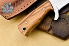 Custom Hand Made D2 STEEL HUNTING KNIFE WITH OLIVE WOOD HANDLE We offer a shipping discount for More then one purchased . And discount will be apply on combine invoice, Discount will not apply on separate payment. ITEM DETAILS OVER ALL LENGTH 3.0 inches long (Approx) HANDLE LENGTH 1.5 inches long (Approx) BLADE LENGTH 1.5 inches long (Approx) BLADE HARDNESS 58-60 HRC Which Holds The Sharp Edge For Long Time. HANDLE OLIVE WOOD COVER LEATHER SHEATH This Awesome custom made KNIFE has a nice hand forged with the combination of 4340 & 1080 steel. HOW OUR DAMASCUS IS MADE: All our Damascus is real and not just an acid etch. Damascus is a mixture of 1080HC and 4340 nickel carbon. You heat them up together and then fold the bar over and over to get the desired layers, ours are 396 layers. Then you burn the blade in acid, and it turns the nickel satin color and the high carbon turns blackish gray. This is how the layers are exposed to show the layers of the new steel created coined "Damascus". All Damascus is acid etched to show the layers. If you high polish the metal it will be shinny satin like all steels. Only after you burn the sides of the blade with acid do you see the layers of the two steels. Makes sense? After we make our knives we high polish the handles and put an edge on the blade. The high polishing buffs off the acid burned layer of the handle, and the blade edge is sharpened and the acid burned edge becomes satin. You can re-burn the tang of the blade near the handles and the edge of the blade and it will show the layers once more. All our knives are hand made, durable and unique ***** YOU WILL RECEIVED THE SAME KNIFE Qality Standards Our Damascus blades are made from high quality non-stainless steels which rival or exceed any Damascus blade made from the 10 series with 4340. Our Damascus combination has taken years to perfect and has been tested under a variety of application which will offer professional performance in categories of toughness, strength (lateral stress) and edge honing and holding ability. In a 5 spot Rockwell test our blades will average near or close to 58 which offers a perfect balances between its toughness and strength.Our blades due to carbon content need to be regularly treated with wax and/or 3 in 1 oil to maintain its superior quality. Questions if you have any question feel free to send us message we aim to answer all questions within 24 hours Feedback If you are not satisfied with our service please contact us before leaving any negative or natural feedback. We will resolve all issues as quickly as possible. Disclaimer We are not responsible for any injuries associated with the use of our tools. Our products are intended for legal use only by responsible buyers. Therefore, we will not sell our products to anyone under the age of 18. Before bidding please check your country laws as some countries Custom don't allow this. If your purchase is held by Custom Authorities in your country/State we will not be responsible for that and no refund will be issued Shipping We offer a 20% shipping discount for More then one purchased . And discount will be apply on combine invoice, Discount will not apply on separate payment We ship within 24 hours after receiving complete payment but this can be delayed due to week ends or Governments and Religious Festivals . . This is beyond our control and we apologize for this inconvenience. Precautions Our Tools are very sharp so open and use them very carefully We are not responsible for any injuries associated with the use of our tools Tips to Care knife 1. NEVER STORE YOUR KNIFE FOR LONG TIME IN LEATHER SHEATH. 2. LEATHER CAN ABSORB WATER, WHICH WILL RUST THE KNIFE. 3. ALWAYS CLEAN THE BLADE AFTER USING WITH OIL OR WAX
