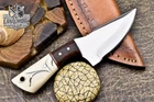 Custom Hand Made DAMASCUS STEEL HUNTING KNIFE WITH RESIN & WOOD HANDLE We offer a shipping discount for More then one purchased . And discount will be apply on combine invoice, Discount will not apply on separate payment. ITEM DETAILS OVER ALL LENGTH 3.0 inches long (Approx) HANDLE LENGTH 1.5 inches long (Approx) BLADE LENGTH 1.5 inches long (Approx) BLADE HARDNESS 58-60 HRC Which Holds The Sharp Edge For Long Time. HANDLE RESIN & WOOD COVER LEATHER SHEATH This Awesome custom made KNIFE has a nice hand forged with the combination of 4340 & 1080 steel. HOW OUR DAMASCUS IS MADE: All our Damascus is real and not just an acid etch. Damascus is a mixture of 1080HC and 4340 nickel carbon. You heat them up together and then fold the bar over and over to get the desired layers, ours are 396 layers. Then you burn the blade in acid, and it turns the nickel satin color and the high carbon turns blackish gray. This is how the layers are exposed to show the layers of the new steel created coined "Damascus". All Damascus is acid etched to show the layers. If you high polish the metal it will be shinny satin like all steels. Only after you burn the sides of the blade with acid do you see the layers of the two steels. Makes sense? After we make our knives we high polish the handles and put an edge on the blade. The high polishing buffs off the acid burned layer of the handle, and the blade edge is sharpened and the acid burned edge becomes satin. You can re-burn the tang of the blade near the handles and the edge of the blade and it will show the layers once more. All our knives are hand made, durable and unique ***** YOU WILL RECEIVED THE SAME KNIFE Qality Standards Our Damascus blades are made from high quality non-stainless steels which rival or exceed any Damascus blade made from the 10 series with 4340. Our Damascus combination has taken years to perfect and has been tested under a variety of application which will offer professional performance in categories of toughness, strength (lateral stress) and edge honing and holding ability. In a 5 spot Rockwell test our blades will average near or close to 58 which offers a perfect balances between its toughness and strength.Our blades due to carbon content need to be regularly treated with wax and/or 3 in 1 oil to maintain its superior quality. Questions if you have any question feel free to send us message we aim to answer all questions within 24 hours Feedback If you are not satisfied with our service please contact us before leaving any negative or natural feedback. We will resolve all issues as quickly as possible. Disclaimer We are not responsible for any injuries associated with the use of our tools. Our products are intended for legal use only by responsible buyers. Therefore, we will not sell our products to anyone under the age of 18. Before bidding please check your country laws as some countries Custom don't allow this. If your purchase is held by Custom Authorities in your country/State we will not be responsible for that and no refund will be issued Shipping We offer a 20% shipping discount for More then one purchased . And discount will be apply on combine invoice, Discount will not apply on separate payment We ship within 24 hours after receiving complete payment but this can be delayed due to week ends or Governments and Religious Festivals . . This is beyond our control and we apologize for this inconvenience. Precautions Our Tools are very sharp so open and use them very carefully We are not responsible for any injuries associated with the use of our tools Tips to Care knife 1. NEVER STORE YOUR KNIFE FOR LONG TIME IN LEATHER SHEATH. 2. LEATHER CAN ABSORB WATER, WHICH WILL RUST THE KNIFE. 3. ALWAYS CLEAN THE BLADE AFTER USING WITH OIL OR WAX
