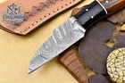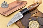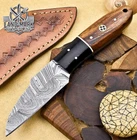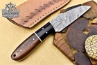 Custom Hand Made DAMASCUS STEEL HUNTING KNIFE WITH ROSE WOOD HANDLE We offer a shipping discount for More then one purchased . And discount will be apply on combine invoice, Discount will not apply on separate payment. ITEM DETAILS OVER ALL LENGTH 8.0 inches long (Approx) HANDLE LENGTH 4.0 inches long (Approx) BLADE LENGTH 4.0 inches long (Approx) BLADE HARDNESS 58-60 HRC Which Holds The Sharp Edge For Long Time. HANDLE ROSE WOOD COVER LEATHER SHEATH This Awesome custom made KNIFE has a nice hand forged with the combination of 4340 & 1080 steel. HOW OUR DAMASCUS IS MADE: All our Damascus is real and not just an acid etch. Damascus is a mixture of 1080HC and 4340 nickel carbon. You heat them up together and then fold the bar over and over to get the desired layers, ours are 396 layers. Then you burn the blade in acid, and it turns the nickel satin color and the high carbon turns blackish gray. This is how the layers are exposed to show the layers of the new steel created coined "Damascus". All Damascus is acid etched to show the layers. If you high polish the metal it will be shinny satin like all steels. Only after you burn the sides of the blade with acid do you see the layers of the two steels. Makes sense? After we make our knives we high polish the handles and put an edge on the blade. The high polishing buffs off the acid burned layer of the handle, and the blade edge is sharpened and the acid burned edge becomes satin. You can re-burn the tang of the blade near the handles and the edge of the blade and it will show the layers once more. All our knives are hand made, durable and unique ***** YOU WILL RECEIVED THE SAME KNIFE Qality Standards Our Damascus blades are made from high quality non-stainless steels which rival or exceed any Damascus blade made from the 10 series with 4340. Our Damascus combination has taken years to perfect and has been tested under a variety of application which will offer professional performance in categories of toughness, strength (lateral stress) and edge honing and holding ability. In a 5 spot Rockwell test our blades will average near or close to 58 which offers a perfect balances between its toughness and strength.Our blades due to carbon content need to be regularly treated with wax and/or 3 in 1 oil to maintain its superior quality. Questions if you have any question feel free to send us message we aim to answer all questions within 24 hours Feedback If you are not satisfied with our service please contact us before leaving any negative or natural feedback. We will resolve all issues as quickly as possible. Disclaimer We are not responsible for any injuries associated with the use of our tools. Our products are intended for legal use only by responsible buyers. Therefore, we will not sell our products to anyone under the age of 18. Before bidding please check your country laws as some countries Custom don't allow this. If your purchase is held by Custom Authorities in your country/State we will not be responsible for that and no refund will be issued Shipping We offer a 20% shipping discount for More then one purchased . And discount will be apply on combine invoice, Discount will not apply on separate payment We ship within 24 hours after receiving complete payment but this can be delayed due to week ends or Governments and Religious Festivals . . This is beyond our control and we apologize for this inconvenience. Precautions Our Tools are very sharp so open and use them very carefully We are not responsible for any injuries associated with the use of our tools Tips to Care knife 1. NEVER STORE YOUR KNIFE FOR LONG TIME IN LEATHER SHEATH. 2. LEATHER CAN ABSORB WATER, WHICH WILL RUST THE KNIFE. 3. ALWAYS CLEAN THE BLADE AFTER USING WITH OIL OR WAX