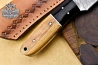 Custom Hand Made DAMASCUS STEEL HUNTING KNIFE WITH OLIVE WOOD HANDLE We offer a shipping discount for More then one purchased . And discount will be apply on combine invoice, Discount will not apply on separate payment. ITEM DETAILS OVER ALL LENGTH 8.0 inches long (Approx) HANDLE LENGTH 4.0 inches long (Approx) BLADE LENGTH 4.0 inches long (Approx) BLADE HARDNESS 58-60 HRC Which Holds The Sharp Edge For Long Time. HANDLE OLIVE WOOD COVER LEATHER SHEATH This Awesome custom made KNIFE has a nice hand forged with the combination of 4340 & 1080 steel. HOW OUR DAMASCUS IS MADE: All our Damascus is real and not just an acid etch. Damascus is a mixture of 1080HC and 4340 nickel carbon. You heat them up together and then fold the bar over and over to get the desired layers, ours are 396 layers. Then you burn the blade in acid, and it turns the nickel satin color and the high carbon turns blackish gray. This is how the layers are exposed to show the layers of the new steel created coined "Damascus". All Damascus is acid etched to show the layers. If you high polish the metal it will be shinny satin like all steels. Only after you burn the sides of the blade with acid do you see the layers of the two steels. Makes sense? After we make our knives we high polish the handles and put an edge on the blade. The high polishing buffs off the acid burned layer of the handle, and the blade edge is sharpened and the acid burned edge becomes satin. You can re-burn the tang of the blade near the handles and the edge of the blade and it will show the layers once more. All our knives are hand made, durable and unique ***** YOU WILL RECEIVED THE SAME KNIFE Qality Standards Our Damascus blades are made from high quality non-stainless steels which rival or exceed any Damascus blade made from the 10 series with 4340. Our Damascus combination has taken years to perfect and has been tested under a variety of application which will offer professional performance in categories of toughness, strength (lateral stress) and edge honing and holding ability. In a 5 spot Rockwell test our blades will average near or close to 58 which offers a perfect balances between its toughness and strength.Our blades due to carbon content need to be regularly treated with wax and/or 3 in 1 oil to maintain its superior quality. Questions if you have any question feel free to send us message we aim to answer all questions within 24 hours Feedback If you are not satisfied with our service please contact us before leaving any negative or natural feedback. We will resolve all issues as quickly as possible. Disclaimer We are not responsible for any injuries associated with the use of our tools. Our products are intended for legal use only by responsible buyers. Therefore, we will not sell our products to anyone under the age of 18. Before bidding please check your country laws as some countries Custom don't allow this. If your purchase is held by Custom Authorities in your country/State we will not be responsible for that and no refund will be issued Shipping We offer a 20% shipping discount for More then one purchased . And discount will be apply on combine invoice, Discount will not apply on separate payment We ship within 24 hours after receiving complete payment but this can be delayed due to week ends or Governments and Religious Festivals . . This is beyond our control and we apologize for this inconvenience. Precautions Our Tools are very sharp so open and use them very carefully We are not responsible for any injuries associated with the use of our tools Tips to Care knife 1. NEVER STORE YOUR KNIFE FOR LONG TIME IN LEATHER SHEATH. 2. LEATHER CAN ABSORB WATER, WHICH WILL RUST THE KNIFE. 3. ALWAYS CLEAN THE BLADE AFTER USING WITH OIL OR WAX