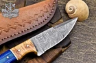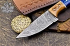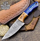 BEAUTIFUL DAMASCUS HUNTING SKINNER KNIFE WITH PAKKA & WOOD BOLSTER WOOD HANDLE