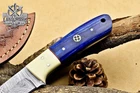 BEAUTIFUL DAMASCUS HUNTING SKINNER KNIFE WITH PAKKA WOOD & BONE BOLSTER HANDLE