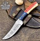 BEAUTIFUL DAMASCUS HUNTING SKINNER KNIFE WITH WOOD BEAUTIFUL FLAG HANDLE