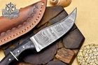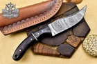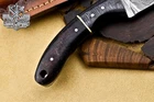 Custom Hand Made DAMASCUS STEEL HUNTING KNIFE WITH WOOD HANDLE We offer a shipping discount for More then one purchased . And discount will be apply on combine invoice, Discount will not apply on separate payment. ITEM DETAILS OVER ALL LENGTH 8.0 inches long (Approx) HANDLE LENGTH 4.0 inches long (Approx) BLADE LENGTH 4.0 inches long (Approx) BLADE HARDNESS 58-60 HRC Which Holds The Sharp Edge For Long Time. HANDLE BLACK HANDLE COVER LEATHER SHEATH This Awesome custom made KNIFE has a nice hand forged with the combination of 4340 & 1080 steel. HOW OUR DAMASCUS IS MADE: All our Damascus is real and not just an acid etch. Damascus is a mixture of 1080HC and 4340 nickel carbon. You heat them up together and then fold the bar over and over to get the desired layers, ours are 396 layers. Then you burn the blade in acid, and it turns the nickel satin color and the high carbon turns blackish gray. This is how the layers are exposed to show the layers of the new steel created coined "Damascus". All Damascus is acid etched to show the layers. If you high polish the metal it will be shinny satin like all steels. Only after you burn the sides of the blade with acid do you see the layers of the two steels. Makes sense? After we make our knives we high polish the handles and put an edge on the blade. The high polishing buffs off the acid burned layer of the handle, and the blade edge is sharpened and the acid burned edge becomes satin. You can re-burn the tang of the blade near the handles and the edge of the blade and it will show the layers once more. All our knives are hand made, durable and unique ***** YOU WILL RECEIVED THE SAME KNIFE Qality Standards Our Damascus blades are made from high quality non-stainless steels which rival or exceed any Damascus blade made from the 10 series with 4340. Our Damascus combination has taken years to perfect and has been tested under a variety of application which will offer professional performance in categories of toughness, strength (lateral stress) and edge honing and holding ability. In a 5 spot Rockwell test our blades will average near or close to 58 which offers a perfect balances between its toughness and strength.Our blades due to carbon content need to be regularly treated with wax and/or 3 in 1 oil to maintain its superior quality. Questions if you have any question feel free to send us message we aim to answer all questions within 24 hours Feedback If you are not satisfied with our service please contact us before leaving any negative or natural feedback. We will resolve all issues as quickly as possible. Disclaimer We are not responsible for any injuries associated with the use of our tools. Our products are intended for legal use only by responsible buyers. Therefore, we will not sell our products to anyone under the age of 18. Before bidding please check your country laws as some countries Custom don't allow this. If your purchase is held by Custom Authorities in your country/State we will not be responsible for that and no refund will be issued Shipping We offer a 20% shipping discount for More then one purchased . And discount will be apply on combine invoice, Discount will not apply on separate payment We ship within 24 hours after receiving complete payment but this can be delayed due to week ends or Governments and Religious Festivals . . This is beyond our control and we apologize for this inconvenience. Precautions Our Tools are very sharp so open and use them very carefully We are not responsible for any injuries associated with the use of our tools Tips to Care knife 1. NEVER STORE YOUR KNIFE FOR LONG TIME IN LEATHER SHEATH. 2. LEATHER CAN ABSORB WATER, WHICH WILL RUST THE KNIFE. 3. ALWAYS CLEAN THE BLADE AFTER USING WITH OIL OR WAX