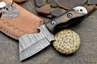 Custom Hand Made D2 STEEL HUNTING KNIFE WITH MICARTA HANDLE We offer a shipping discount for More then one purchased . And discount will be apply on combine invoice, Discount will not apply on separate payment. ITEM DETAILS OVER ALL LENGTH 3.0 inches long (Approx) HANDLE LENGTH 1.5 inches long (Approx) BLADE LENGTH 1.5 inches long (Approx) BLADE HARDNESS 58-60 HRC Which Holds The Sharp Edge For Long Time. HANDLE MICRTA COVER LEATHER SHEATH This Awesome custom made KNIFE has a nice hand forged with the combination of 4340 & 1080 steel. HOW OUR DAMASCUS IS MADE: All our Damascus is real and not just an acid etch. Damascus is a mixture of 1080HC and 4340 nickel carbon. You heat them up together and then fold the bar over and over to get the desired layers, ours are 396 layers. Then you burn the blade in acid, and it turns the nickel satin color and the high carbon turns blackish gray. This is how the layers are exposed to show the layers of the new steel created coined "Damascus". All Damascus is acid etched to show the layers. If you high polish the metal it will be shinny satin like all steels. Only after you burn the sides of the blade with acid do you see the layers of the two steels. Makes sense? After we make our knives we high polish the handles and put an edge on the blade. The high polishing buffs off the acid burned layer of the handle, and the blade edge is sharpened and the acid burned edge becomes satin. You can re-burn the tang of the blade near the handles and the edge of the blade and it will show the layers once more. All our knives are hand made, durable and unique ***** YOU WILL RECEIVED THE SAME KNIFE Qality Standards Our Damascus blades are made from high quality non-stainless steels which rival or exceed any Damascus blade made from the 10 series with 4340. Our Damascus combination has taken years to perfect and has been tested under a variety of application which will offer professional performance in categories of toughness, strength (lateral stress) and edge honing and holding ability. In a 5 spot Rockwell test our blades will average near or close to 58 which offers a perfect balances between its toughness and strength.Our blades due to carbon content need to be regularly treated with wax and/or 3 in 1 oil to maintain its superior quality. Questions if you have any question feel free to send us message we aim to answer all questions within 24 hours Feedback If you are not satisfied with our service please contact us before leaving any negative or natural feedback. We will resolve all issues as quickly as possible. Disclaimer We are not responsible for any injuries associated with the use of our tools. Our products are intended for legal use only by responsible buyers. Therefore, we will not sell our products to anyone under the age of 18. Before bidding please check your country laws as some countries Custom don't allow this. If your purchase is held by Custom Authorities in your country/State we will not be responsible for that and no refund will be issued Shipping We offer a 20% shipping discount for More then one purchased . And discount will be apply on combine invoice, Discount will not apply on separate payment We ship within 24 hours after receiving complete payment but this can be delayed due to week ends or Governments and Religious Festivals . . This is beyond our control and we apologize for this inconvenience. Precautions Our Tools are very sharp so open and use them very carefully We are not responsible for any injuries associated with the use of our tools Tips to Care knife 1. NEVER STORE YOUR KNIFE FOR LONG TIME IN LEATHER SHEATH. 2. LEATHER CAN ABSORB WATER, WHICH WILL RUST THE KNIFE. 3. ALWAYS CLEAN THE BLADE AFTER USING WITH OIL OR WAX