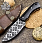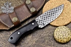 Custom Hand Made DAMASCUS STEEL HUNTING KNIFE WITH BLACK HANDLE We offer a shipping discount for More then one purchased . And discount will be apply on combine invoice, Discount will not apply on separate payment. ITEM DETAILS OVER ALL LENGTH 8.0 inches long (Approx) HANDLE LENGTH 4.0 inches long (Approx) BLADE LENGTH 4.0 inches long (Approx) BLADE HARDNESS 58-60 HRC Which Holds The Sharp Edge For Long Time. HANDLE BLACK COVER LEATHER SHEATH This Awesome custom made KNIFE has a nice hand forged with the combination of 4340 & 1080 steel. HOW OUR DAMASCUS IS MADE: All our Damascus is real and not just an acid etch. Damascus is a mixture of 1080HC and 4340 nickel carbon. You heat them up together and then fold the bar over and over to get the desired layers, ours are 396 layers. Then you burn the blade in acid, and it turns the nickel satin color and the high carbon turns blackish gray. This is how the layers are exposed to show the layers of the new steel created coined "Damascus". All Damascus is acid etched to show the layers. If you high polish the metal it will be shinny satin like all steels. Only after you burn the sides of the blade with acid do you see the layers of the two steels. Makes sense? After we make our knives we high polish the handles and put an edge on the blade. The high polishing buffs off the acid burned layer of the handle, and the blade edge is sharpened and the acid burned edge becomes satin. You can re-burn the tang of the blade near the handles and the edge of the blade and it will show the layers once more. All our knives are hand made, durable and unique ***** YOU WILL RECEIVED THE SAME KNIFE Qality Standards Our Damascus blades are made from high quality non-stainless steels which rival or exceed any Damascus blade made from the 10 series with 4340. Our Damascus combination has taken years to perfect and has been tested under a variety of application which will offer professional performance in categories of toughness, strength (lateral stress) and edge honing and holding ability. In a 5 spot Rockwell test our blades will average near or close to 58 which offers a perfect balances between its toughness and strength.Our blades due to carbon content need to be regularly treated with wax and/or 3 in 1 oil to maintain its superior quality. Questions if you have any question feel free to send us message we aim to answer all questions within 24 hours Feedback If you are not satisfied with our service please contact us before leaving any negative or natural feedback. We will resolve all issues as quickly as possible. Disclaimer We are not responsible for any injuries associated with the use of our tools. Our products are intended for legal use only by responsible buyers. Therefore, we will not sell our products to anyone under the age of 18. Before bidding please check your country laws as some countries Custom don't allow this. If your purchase is held by Custom Authorities in your country/State we will not be responsible for that and no refund will be issued Shipping We offer a 20% shipping discount for More then one purchased . And discount will be apply on combine invoice, Discount will not apply on separate payment We ship within 24 hours after receiving complete payment but this can be delayed due to week ends or Governments and Religious Festivals . . This is beyond our control and we apologize for this inconvenience. Precautions Our Tools are very sharp so open and use them very carefully We are not responsible for any injuries associated with the use of our tools Tips to Care knife 1. NEVER STORE YOUR KNIFE FOR LONG TIME IN LEATHER SHEATH. 2. LEATHER CAN ABSORB WATER, WHICH WILL RUST THE KNIFE. 3. ALWAYS CLEAN THE BLADE AFTER USING WITH OIL OR WAX