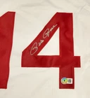 This is a rare opportunity to own a piece of baseball history. This Beckett-certified autographed jersey features the legendary Pete Rose of the Cincinnati Reds. The jersey is an original, and the autograph has been authenticated by Beckett Authentication Services (BAS). This item is a must-have for any baseball fan or collector. It is perfect for displaying in a memorabilia collection or as a gift for a fellow fan. Don't miss out on this opportunity to own a piece of baseball history. Jersey is XL, Brand new in excellent condition. From smoke free home.