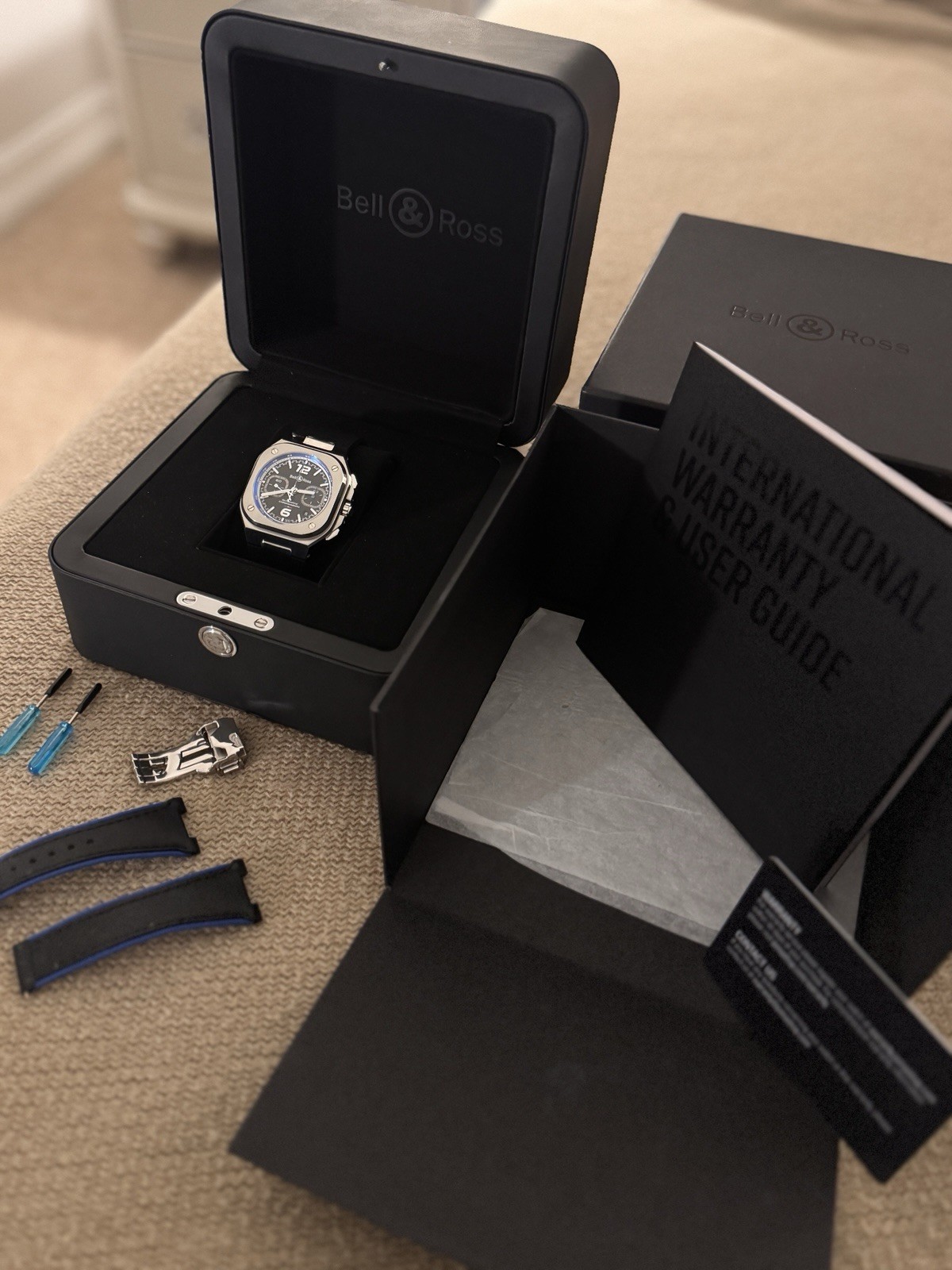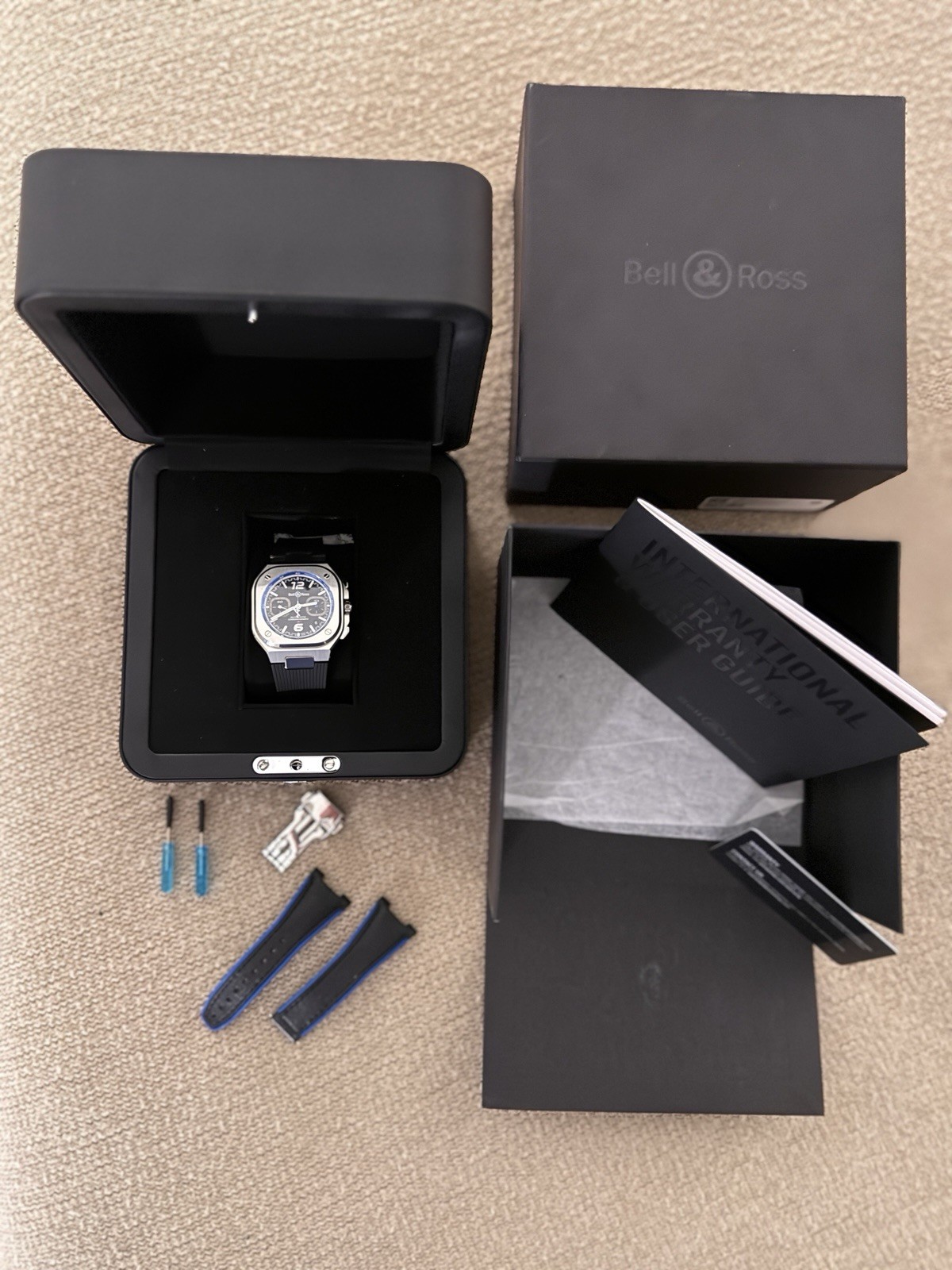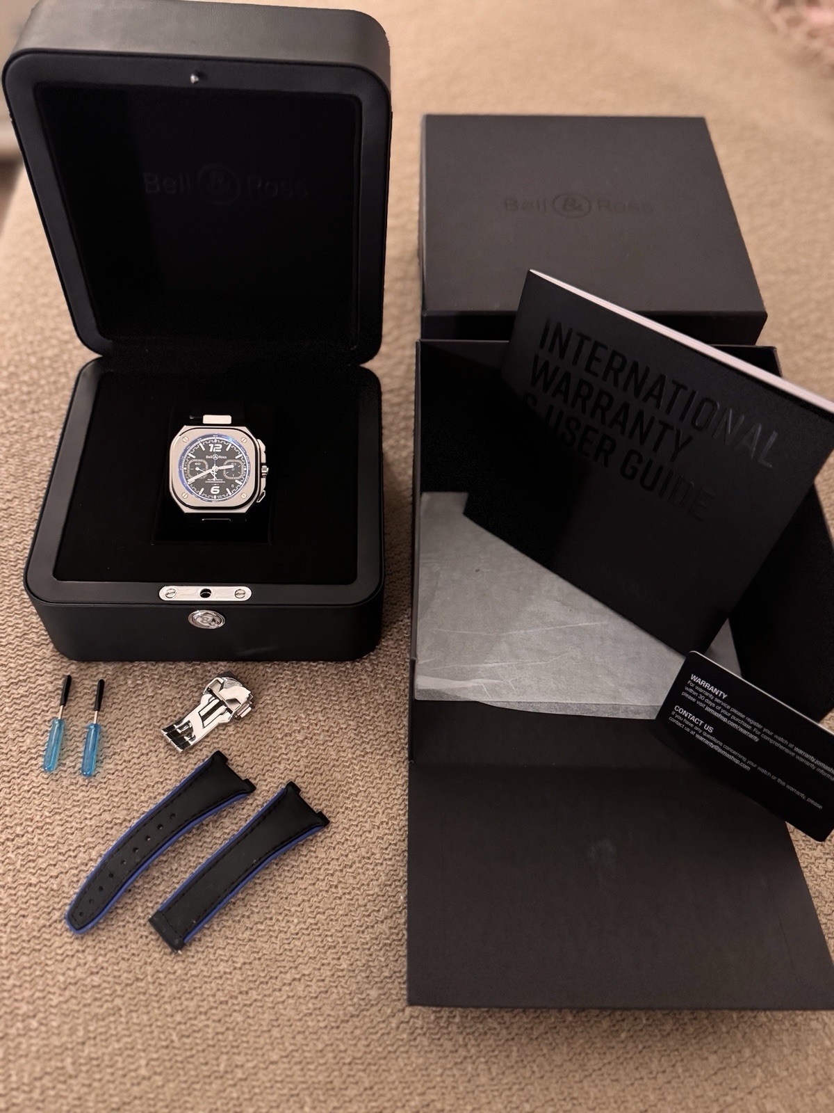 Condition: Like new, still under factory warranty. Warranty: Registered with Bell & Ross (ownership can be swapped). Includes: Original box All documents and warranty cards 2 bands: Original blue and black leather bands BONUS: Brand new all-black rubber band included! Perfect for any watch enthusiast. Serious inquiries only, please!