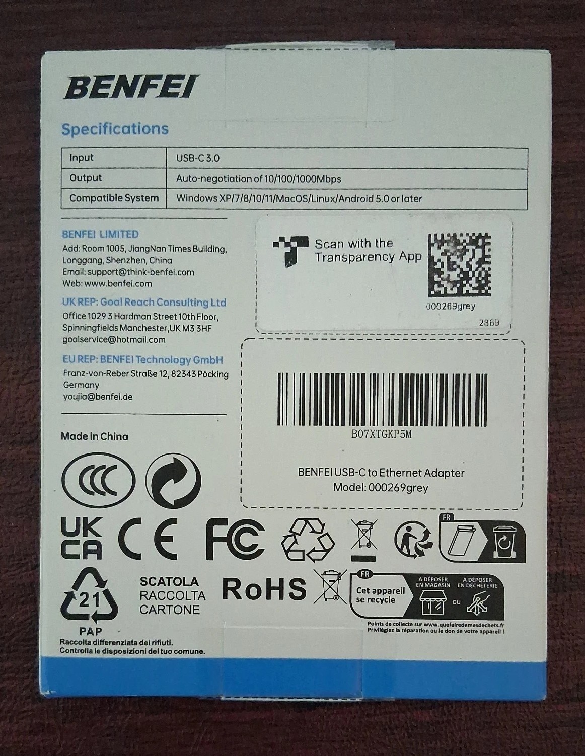 The BENFEI USB-C to Ethernet Adapter is a versatile device that allows you to easily convert your USB Type-C (Thunderbolt 3/4) port into a Gigabit Ethernet port, providing fast and reliable internet connectivity. This adapter, with a sleek design and a brand name you can trust, is ideal for computers and laptops that lack built-in Ethernet ports. With a simple plug and play feature, this adapter is a convenient and practical solution for those who need to connect to the internet via Ethernet on the go.